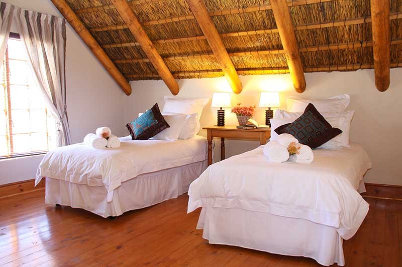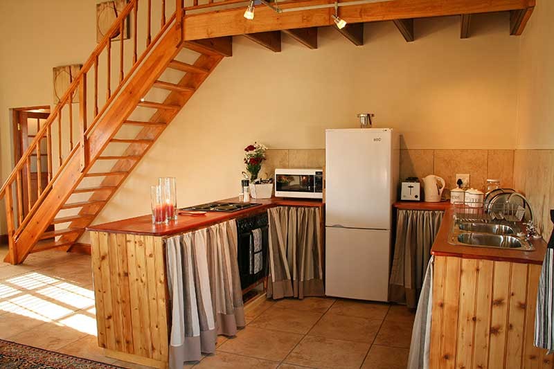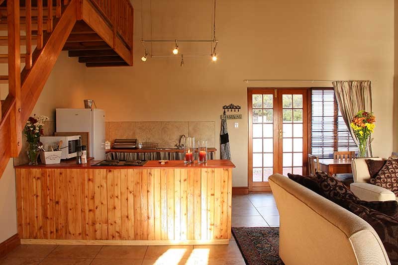 Both spacious and cosy, this 2 bedroom cottage with en suite bathrooms, creates a warm and inviting setting for the perfect country escape. Large windows provide excellent views of the garden, veld and olive orchard surrounding the double story cottage.