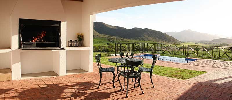 Cosy chairs provide the perfect reading spot in front of the fireplace, or linger on the patio while enjoying some sparkling wine in your private pool.