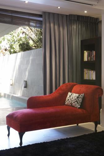 The lounge is stylishly decorated in black and white, with chic white couches to sink into while watching M-Net or satellite TV, and a dark wood coffee table to round off the ensemble. For cooler days when indoor relaxation is what’s called for, guests can make use of the musical keyboard and Play Station 2.