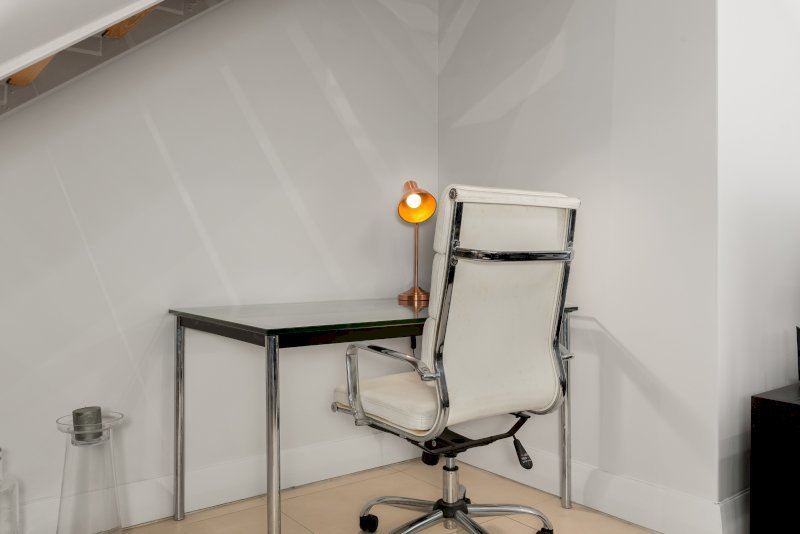 The upstairs bedroom takes up the full upper level, offering an en-suite bathroom and wonderful views. This bedroom incorporates a loft style, meaning that it is open to the double volume lounge.