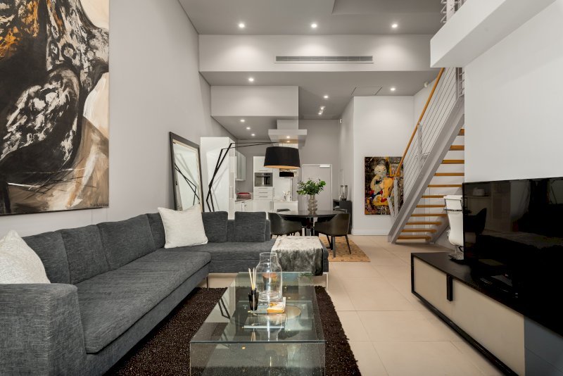 Indulge in the epitome of luxury with this 2-bedroom, 2-bathroom duplex nestled in the heart of Mouille Point at Amalfi Luxury Apartments. The apartment is thoughtfully designed, featuring a split-level layout.