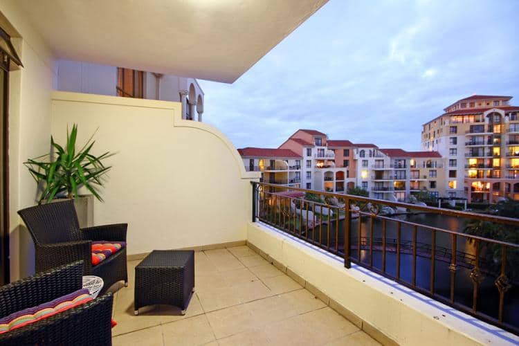 Inside the apartment, you’ll find two bedrooms with built in cupboards. The main bedroom has a queen size bed and an en-suite bathroom. The second bedroom has a double bed. The kitchen is fully furnished with everything you need including cutlery, crockery, a toaster and a microwave. With Canal Walk shopping mall within walking distance, you can purchase all of your ingredients fresh for meals. In the lounge, you’ll find a comfy 2-seater couch, large flat screen TV with DSTV. It’s the perfect place to relax. Outdoors on the balcony, you’ll find two wicker chairs and a table. From the balcony, you’ll have panoramic views of the canal, the ideal spot in the apartment to have sundowners. Within the Island Club complex guests will find an indoor and an outdoor swimming pool where you can relax and cool off on hot summer’s days. There’s no need to get out of your gym routine while on holiday, as the complex is fitted with a state of the art fitness centre.