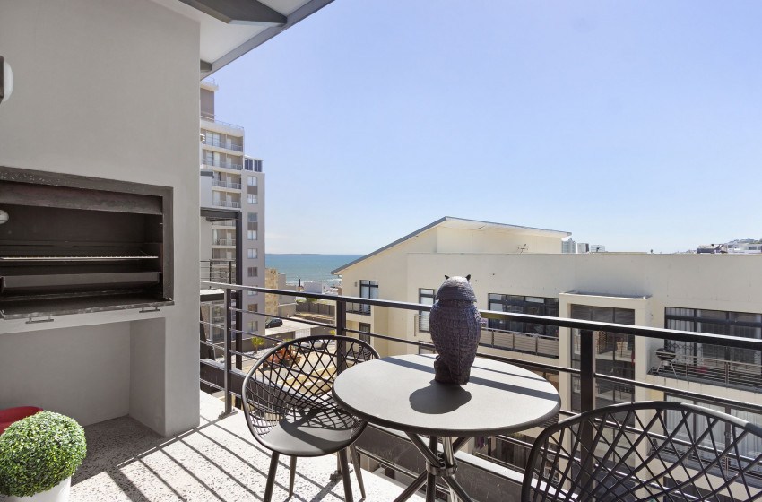 A notable highlight of the apartment is the large balcony – accessible via stacking doors – that features a built-in braai, perfect for a traditional South African braai or simply enjoying alfresco dining in good company. Other amenities include access-controlled security, secure basement parking, fibre connectivity, an elevator for easy access, walking distance to several trendy beachfront restaurants, bars, and coffee shops, and a MyCiTi bus stop for easy travelling.