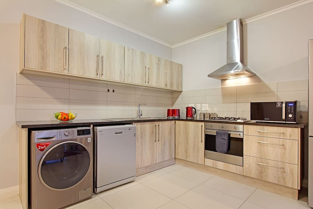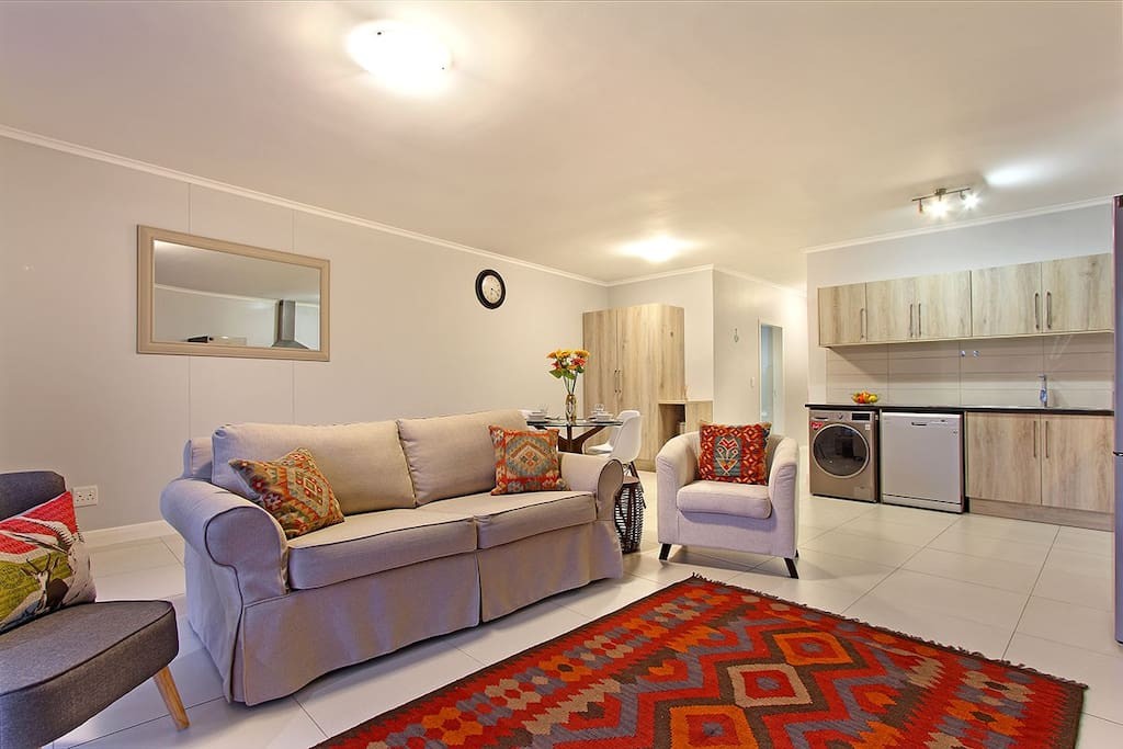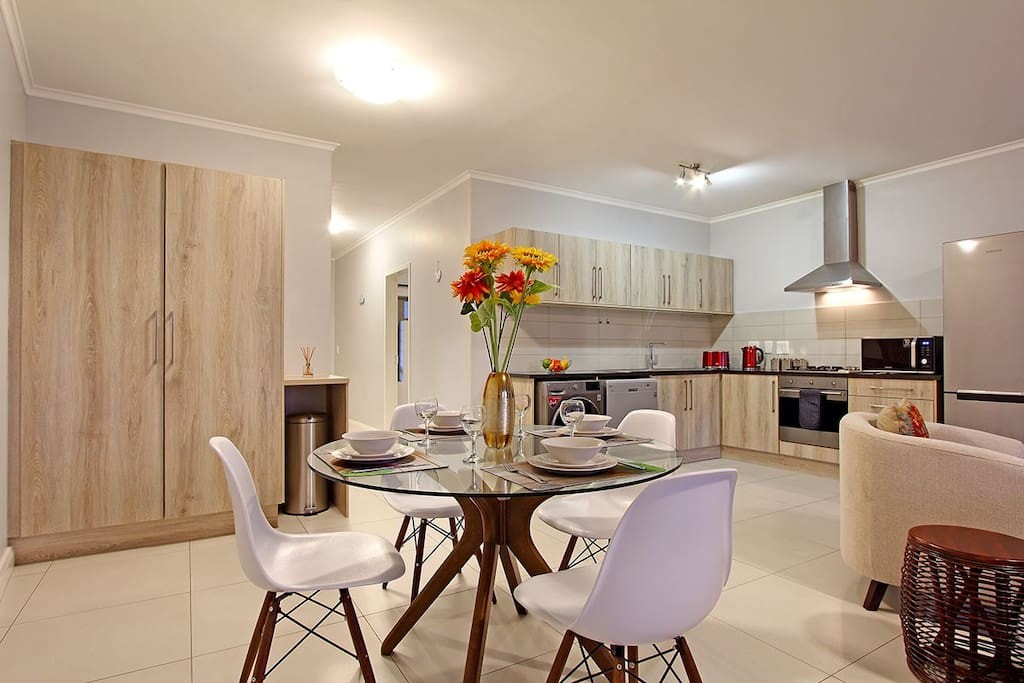 Century City is a contemporary setting that is ideal for a family vacation and this stunning apartment is no exception. While enjoying a stay in this Airbnb apartment, there will be no shortage of excitement and discovery. The kitchen is open planned and fully-equipped with modern appliances, and guests can enjoy sundowners or dine on large balcony that overlooks a lush garden and other attractions. Century City is also regularly visited by business travellers, thanks to its convenient distance from the city and close proximity to the Century City business parks.