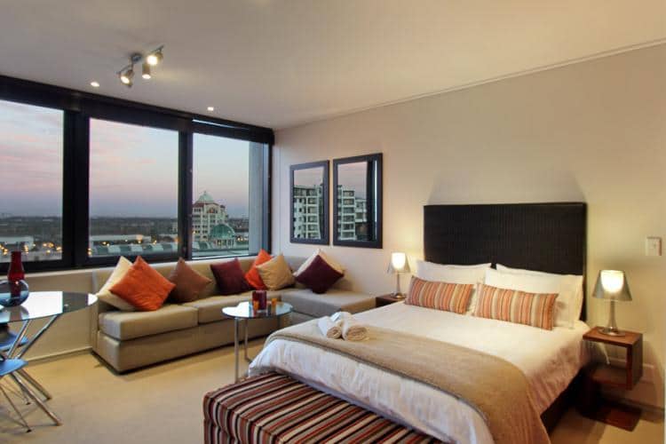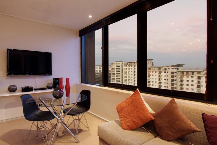 Manhattan suites is located directly opposite one of cape towns largest malls- Century City. On the 12th floor you will find this luxury studio apartment. Fully equipped with a double bed, corner couches, flat screen tv, stunning glass tables and a modern kitchen, this is a nice hide away spot for you to come either on a business trip or a quick getaway.