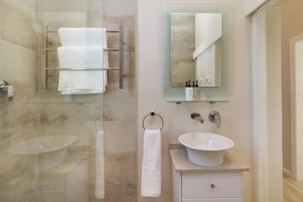 The two bedrooms both have twin beds, which may be converted to King size on request. There is a shared bathroom with a large walk-in shower. The apartment is also fitted with air-conditioning for warmer months.