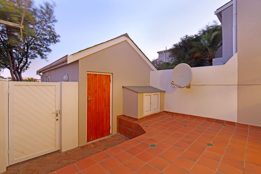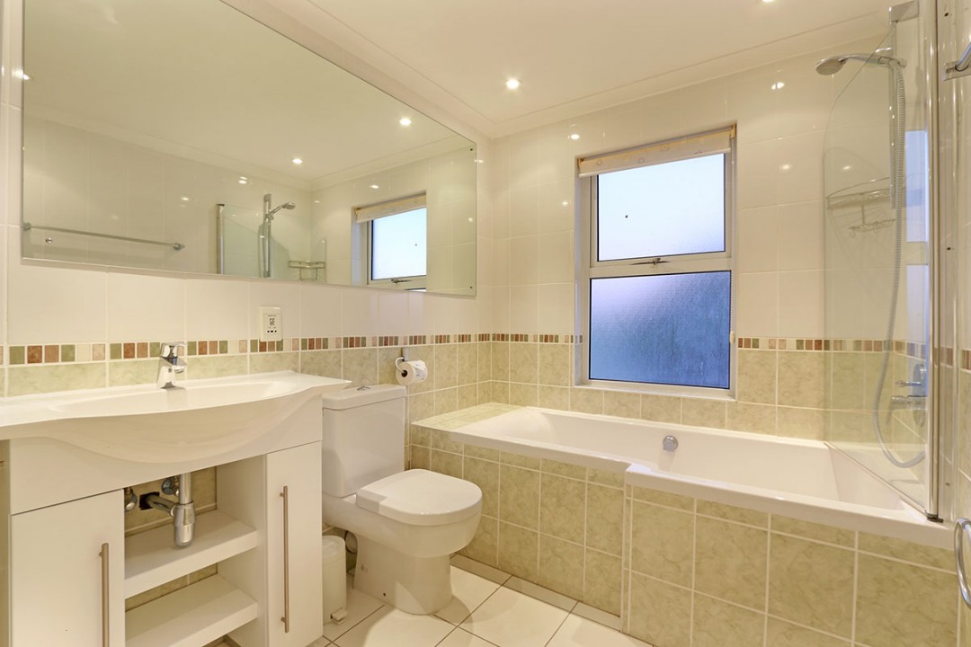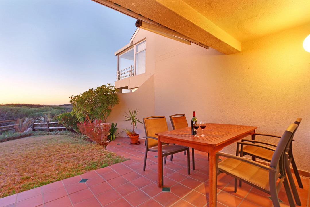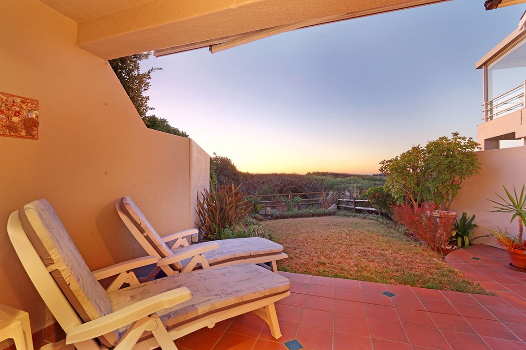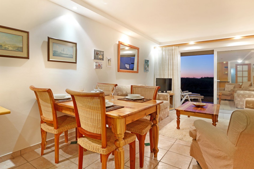 The main interior of the property includes an open plan kitchen, dining area, and lounge that lead out to a private garden with amazing views of the Ocean and Mountain. The kitchen is fully equipped with an oven and hob, a microwave, fridge and freezer, washing machine and dishwasher.