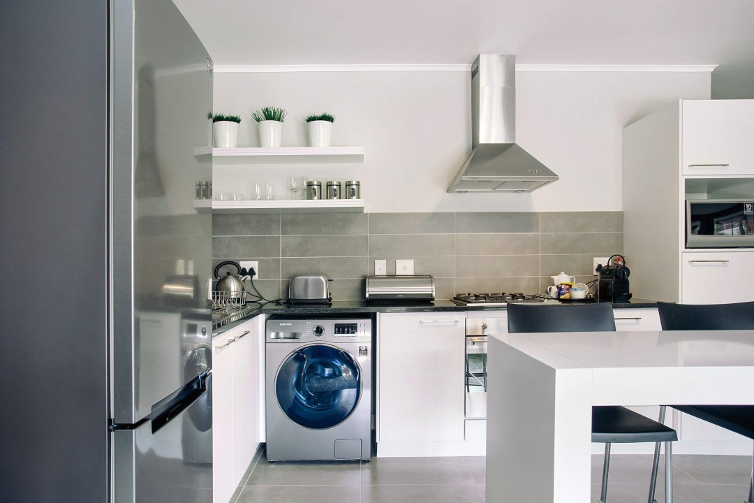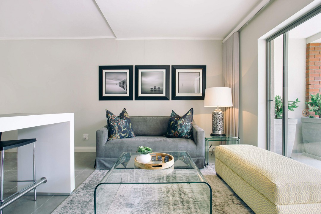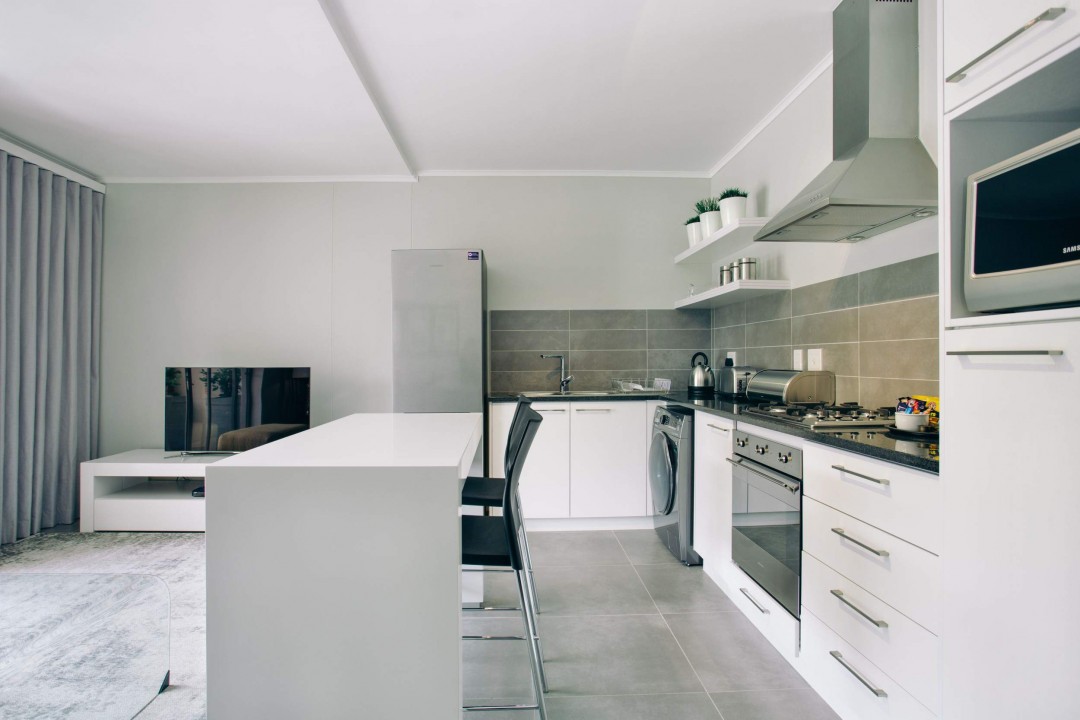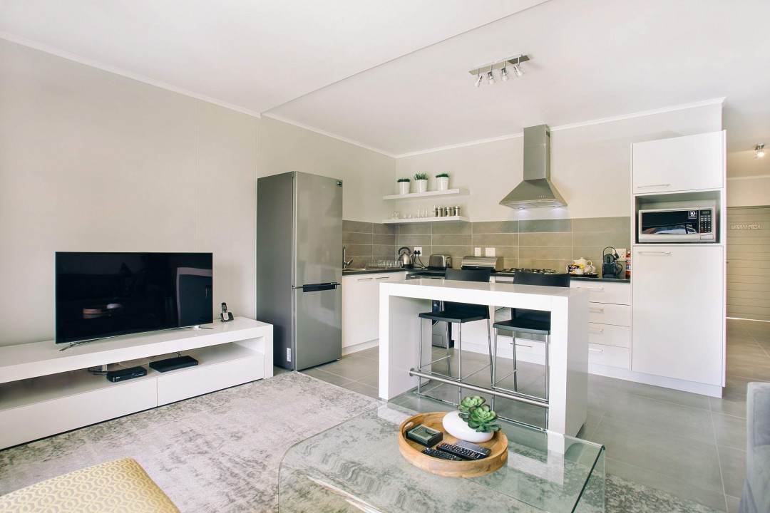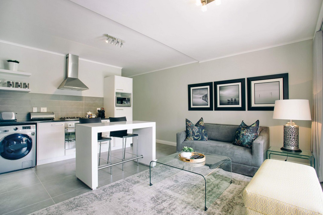 This chic and stylish one bedroom, one bathroom (with shower only, no bath) apartment with open plan lounge and dining room leading to an open balcony overlooking the garden is fully furnished and equipped to the highest standards and includes high quality linens, a washer/dryer machine, microwave, Nespresso coffee machine, flat screen TV, full bouquet DSTV, DVD player, free WIFI and secure basement parking. It is perfect for both singles and couples and is situated in a very safe environment with 24 hour manned security, It is also situated within walking distance to the new Century City Conference Centre, Canal Walk Shopping Centre and Virgin Active gym and is perfect for singles, couples and corporates alike.