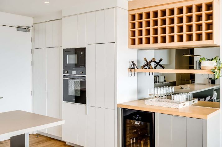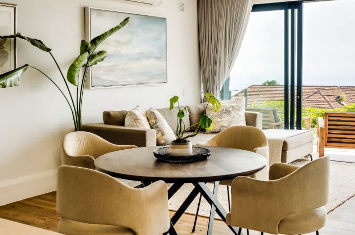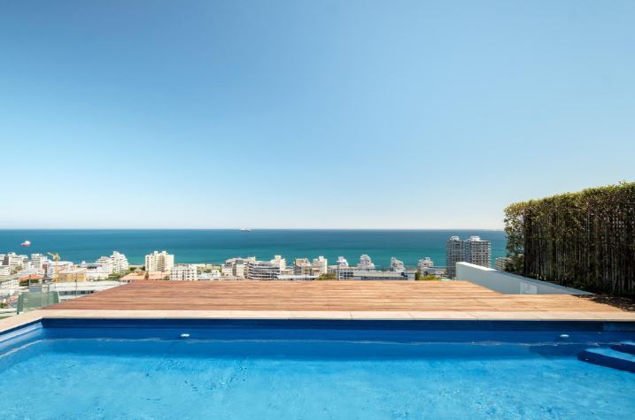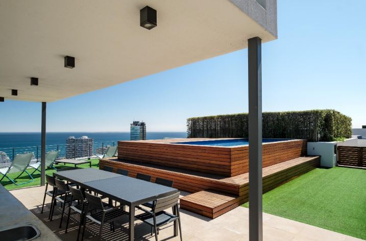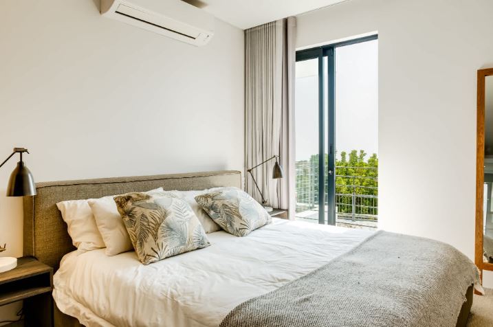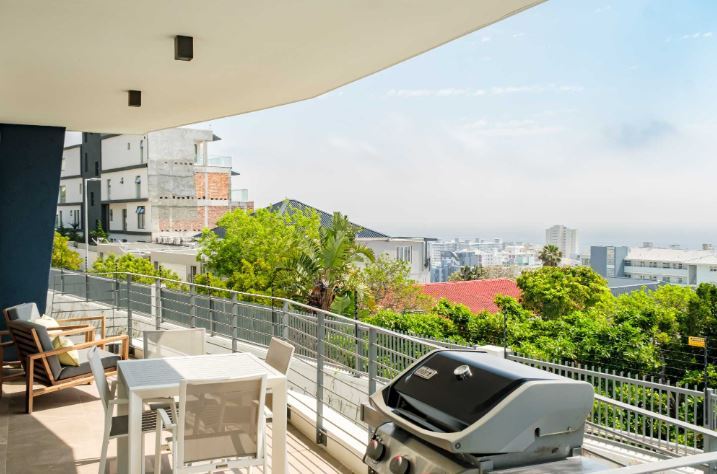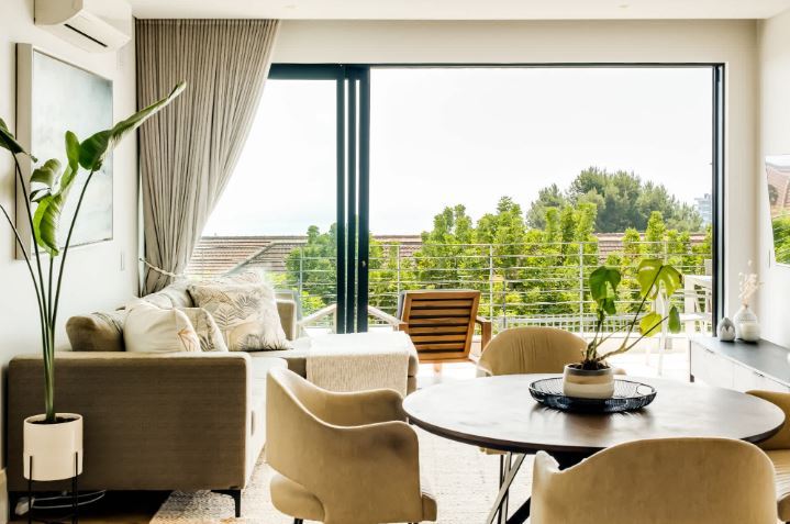 Mirabel is a contemporary and stylish apartment located in the vibrant Sea Point suburb, offering sea and city views and effortless design for a chic city retreat. The main bedroom features a king-sized bed, air conditioning, and a desk, with views and an ensuite bathroom equipped with a bath, shower, and double vanity. The second bedroom offers a queen-sized bed, access to the patio, and a dedicated bathroom with a shower and single vanity. The open-plan kitchen is designed for convenience, with an electric hob, Nespresso machine, dishwasher, washer, and a wine fridge. The living and dining area is light-filled, with seating for three, dining for four, air conditioning, and access to the patio. Outside, the patio offers space to relax, dine, or enjoy a gas BBQ while taking in the cityscape. With its prime location in Sea Point, Mirabel provides easy access to the area’s vibrant dining and entertainment options while offering a serene escape. Perfect for anyone looking for a seamless blend of style, comfort, and centrality in Cape Town.