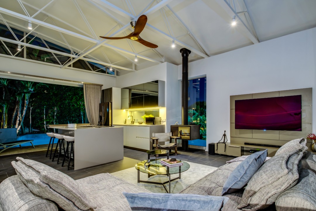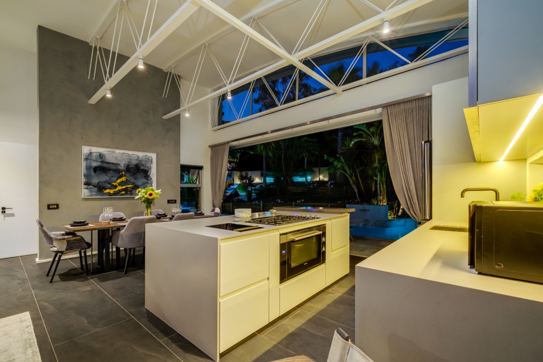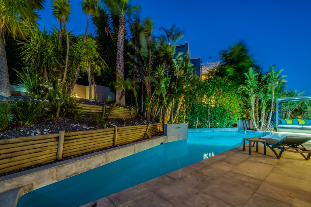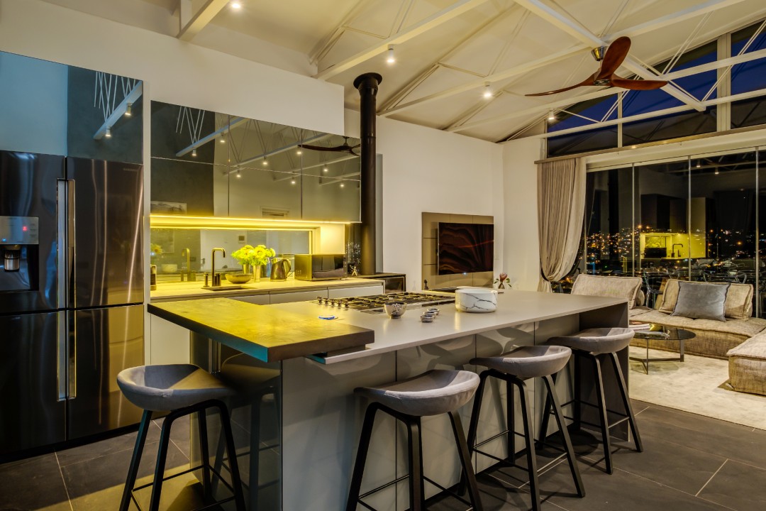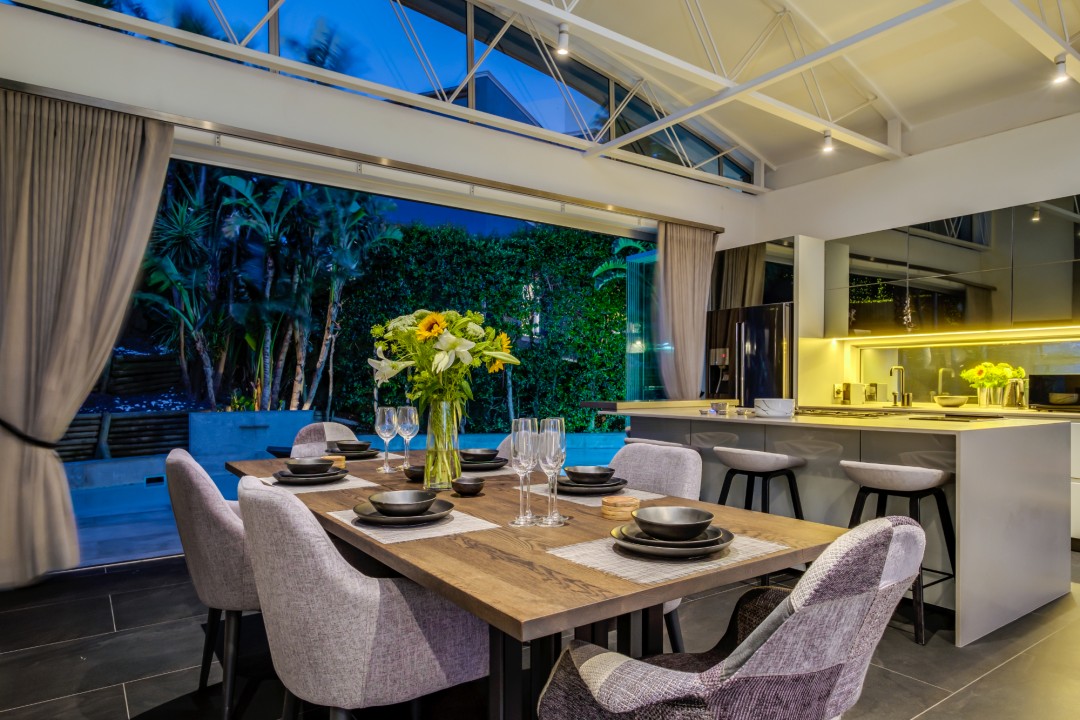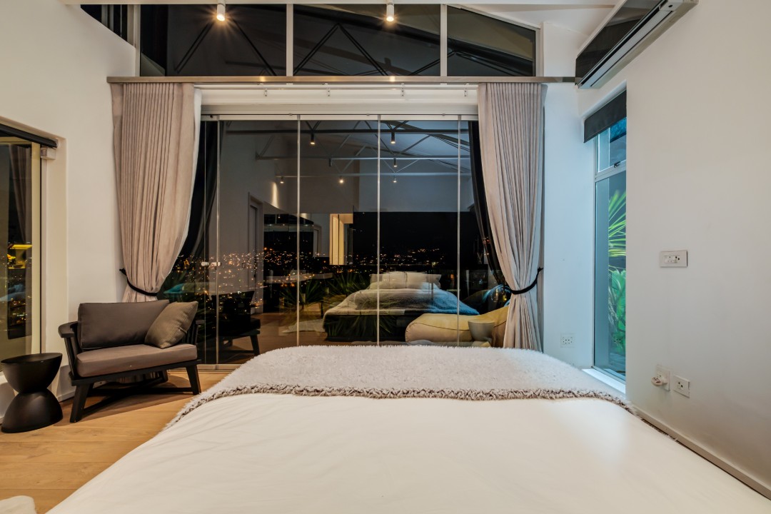 Gorgeously styled, double storey home in the heart of Cape Town. This beautiful property has some of the most exquisite views of Table Mountain and the city below. The large, open-plan living area had double volume ceilings and glass stacking doors to maximise the views and outdoor spaces. The fully equipped kitchen is modern and stylish. The master bedroom leads off the living area. View Table Mountain from the comfort of the King size bed. Enjoy the spacious open-plan bathroom and walk-in closet. This room also has a private balcony. The second and third bedrooms are on the ground floor and lead onto the courtyard with an oversized chess board. These two rooms share a bathroom. The balcony off the lounge has outdoor dining and amazing views. The backyard has a large swimming pool, cabana, fire pit and more outdoor seating.