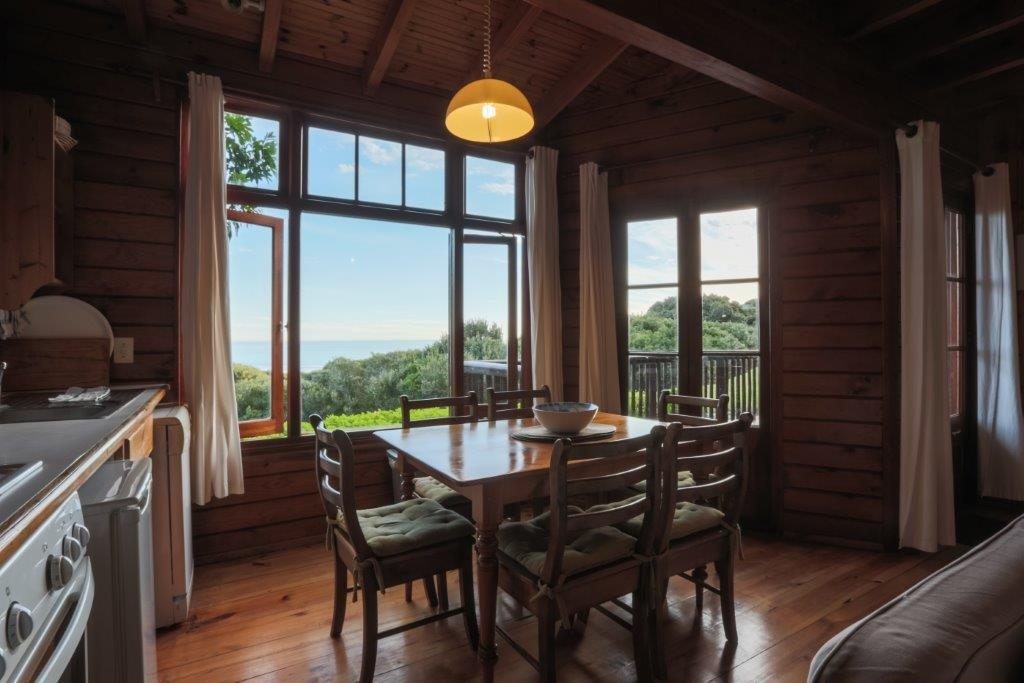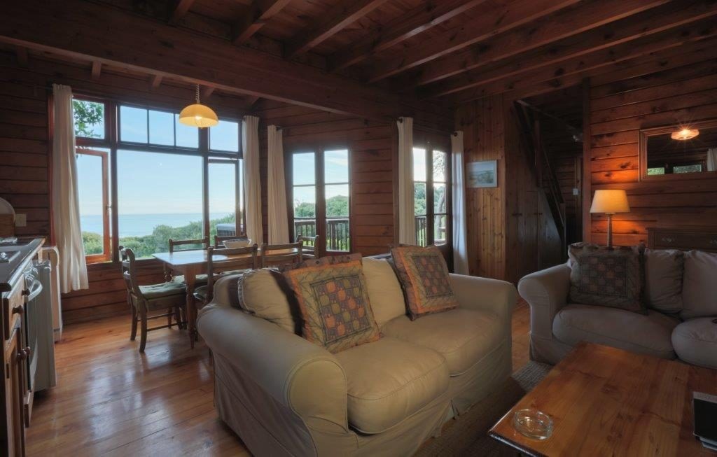 Each also has a deck or lawn terrace with sweeping sea views, its own outside hot shower and private braai (barbeque), with a beautiful stone fireplace inside. The cottages are equipped with: