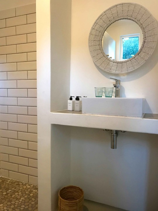 Charming room looking out to the patio with huge lemon trees and lavender, but also giving direct access to the garden through the beautiful bathroom.