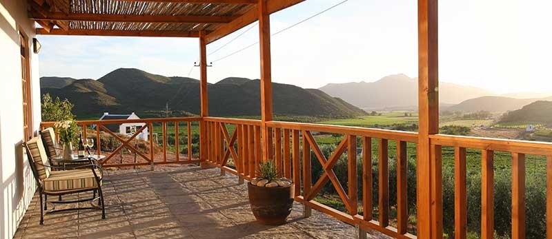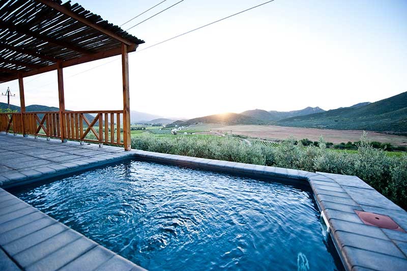 This private oasis of comfort is situated high up on a ridge surrounded by an olive grove and pristine fynbos. The cottage has magnificent 360 degree views of two valleys, mountains, olive groves and vineyards.
