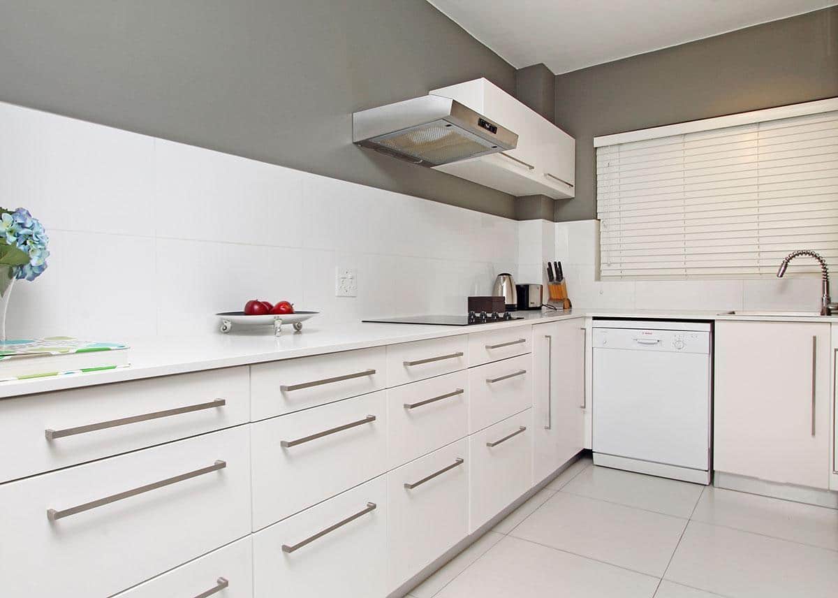 The lounge opens up on to the balcony and has sea views. There is a large TV and a full DSTV bouquet as well as a DVD player. The dining area forms part of the living area and seats 6 people. The modern fully equipped kitchen leads off the lounge and dining area. The kitchen is equipped with all the normal appliances as well as a dishwasher, washing machine and tumbledryer.