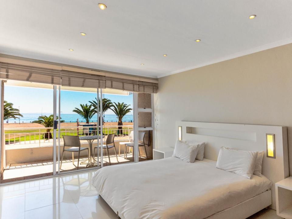 Sliding doors lead out onto a private balcony where guests can fully embrace coastal living. Whether enjoying a morning coffee or evening sundowners, the outdoor space offers front-row views of the ocean and unforgettable sunsets over the Atlantic.