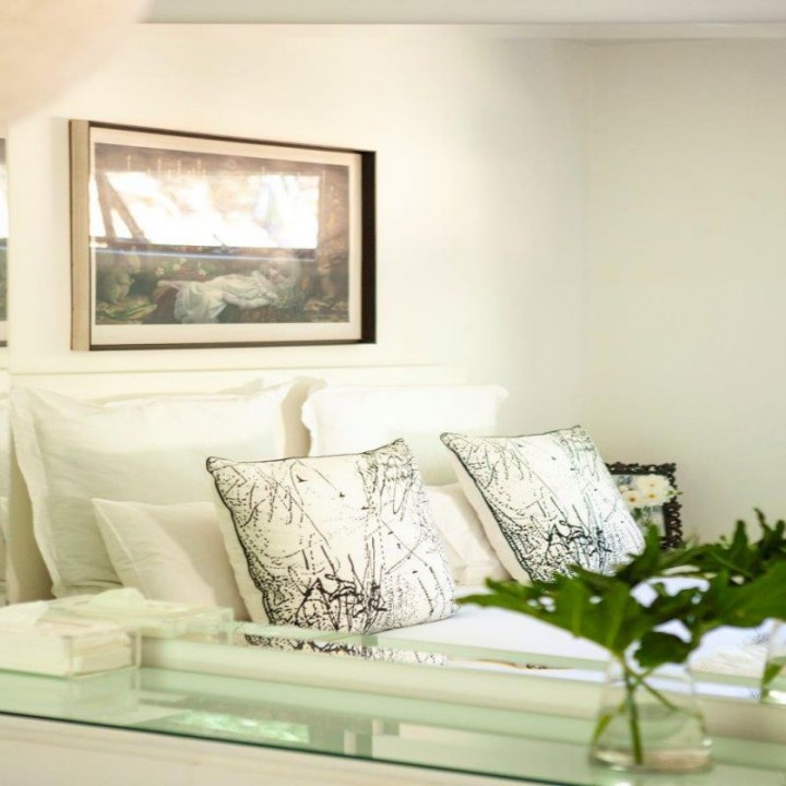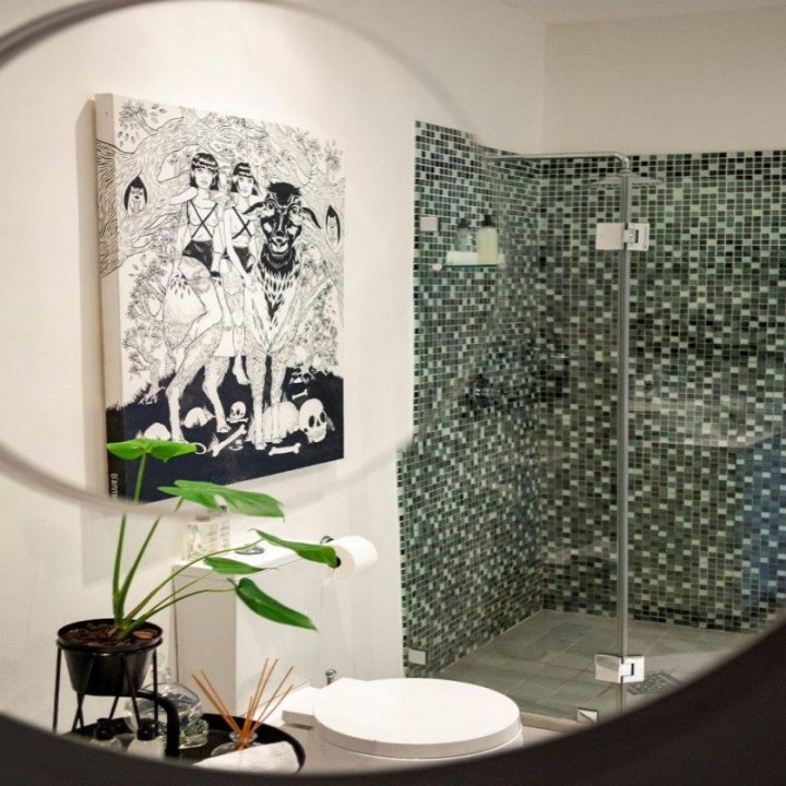 Original unique pieces of art and tasteful books fill the space throughout the villa.