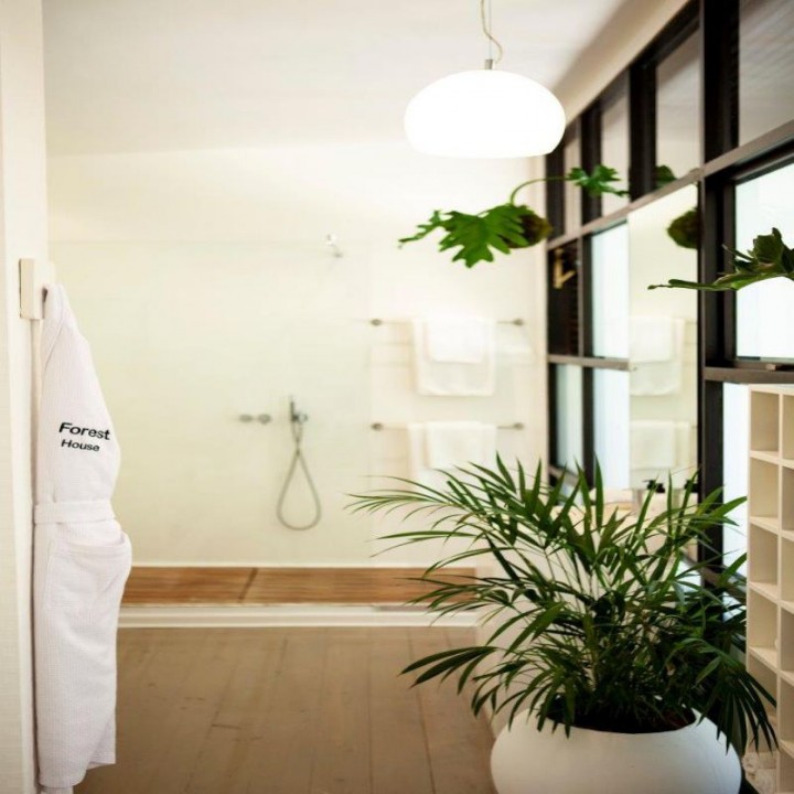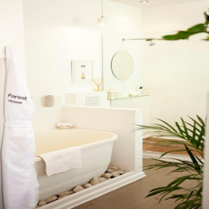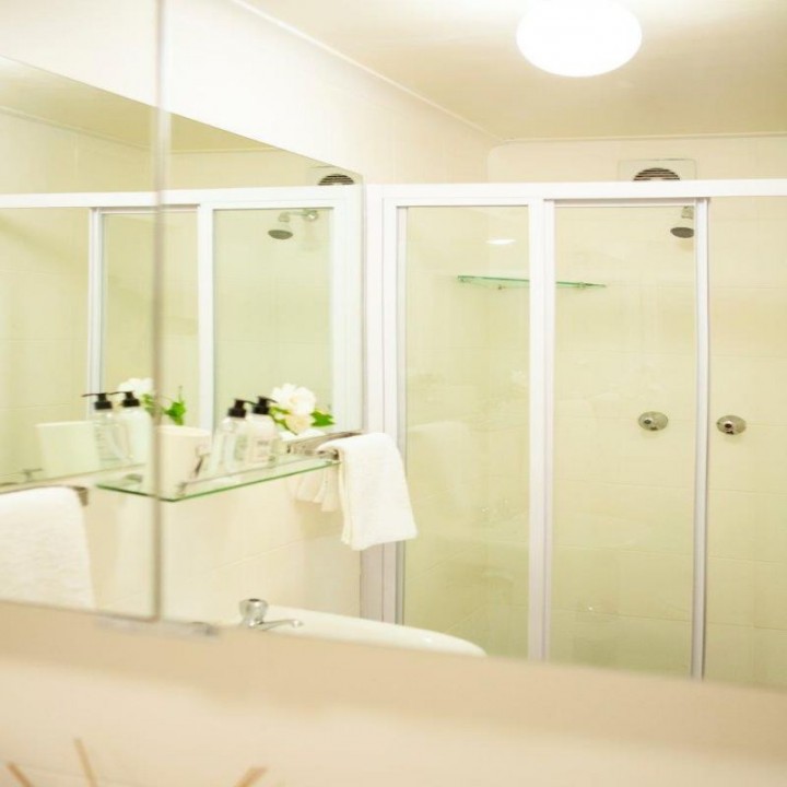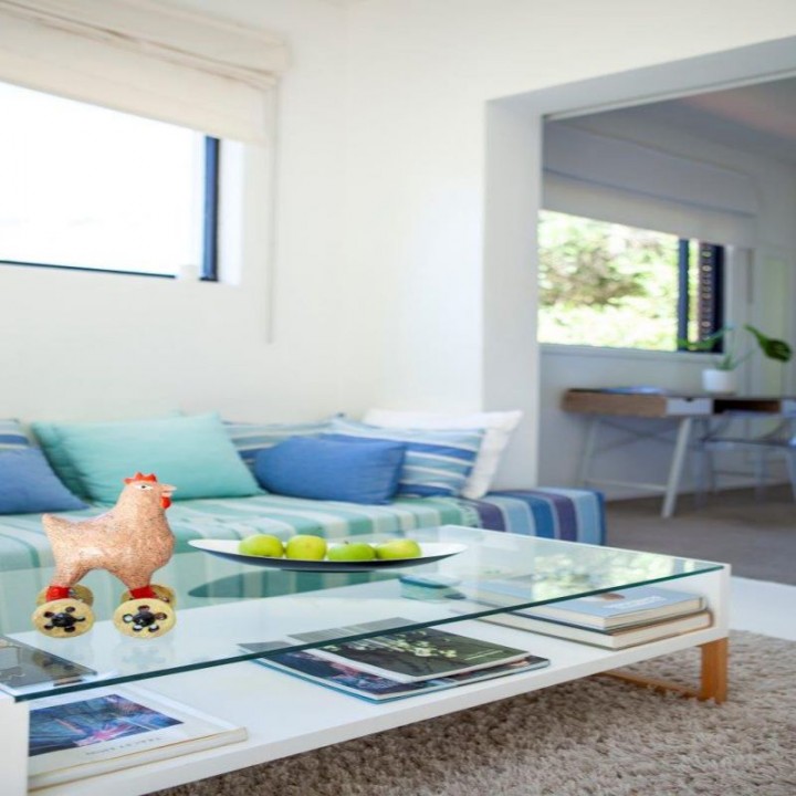 Four luxury bedroom suites with queen size beds and their own bathrooms open out onto wooden decked balconies.