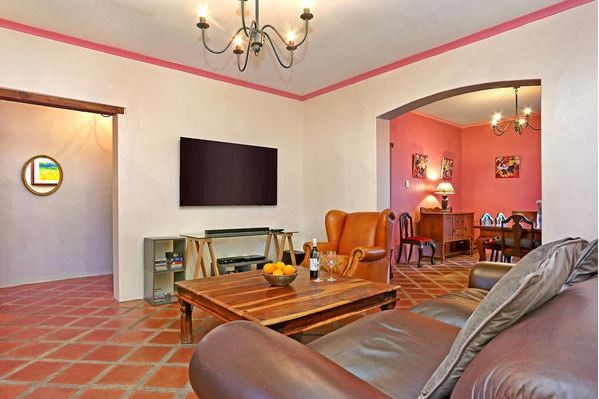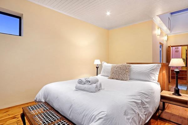 Walk into the vintage Victorian hallway and ascend the handsomely restored staircase to the tastefully appointed bedrooms. In the main bedroom, luxuriate in the queen XL bed as you soak in the panoramic views of Table Mountain, or switch on the flat screen HD TV with DSTV Premium, while the ensuite bathroom boasts a superb sunken bath/shower combination and his and hers basins.