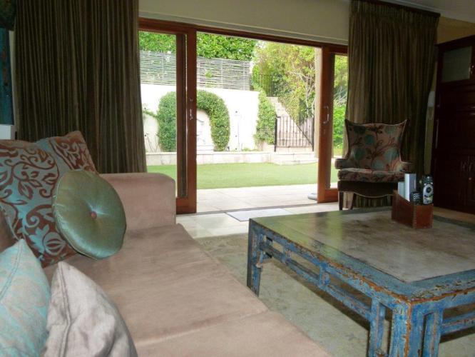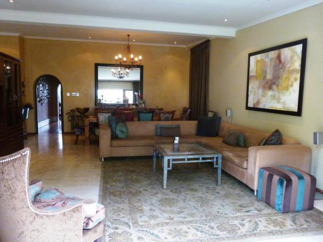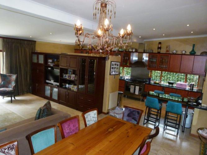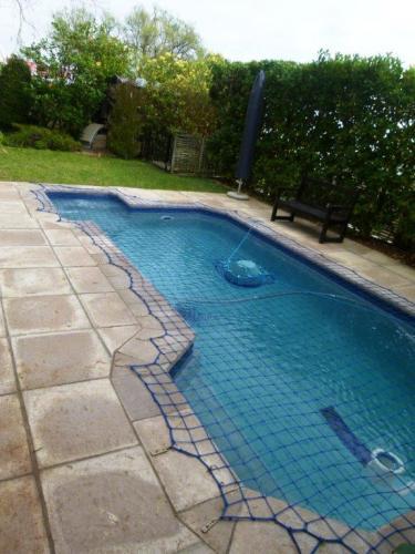 The lounge is open plan with a dining room and kitchen flowing onto the garden. It has an undercover patio with braai area. There is an outdoor with a ten seat table and couch. The pool is heated and has a protection net. The front garden has a kids tree house and slide.
