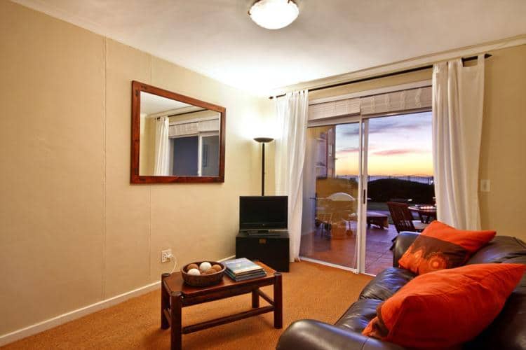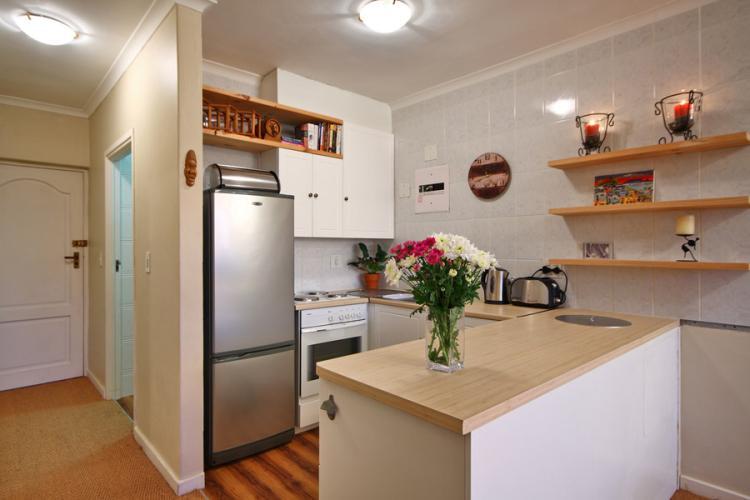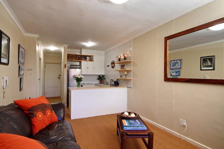 The building, almost right on the edge of the beach, offers a communal swimming pool, should the sea be just a tad too cold for your liking. This area is a lot less busy than the often chaotic beaches of the Atlantic Seaboard and visitors can enjoy long walks while watching incredible sunsets that illuminate the famous mountain in the distance.
