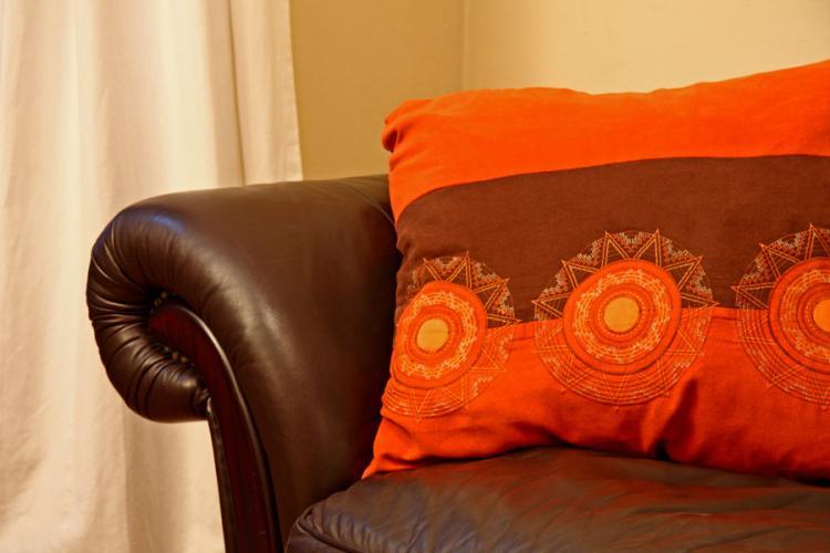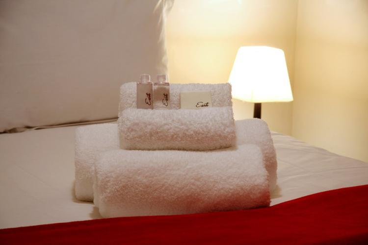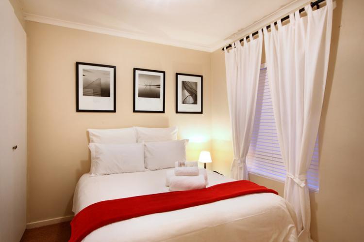 After a long day of exploring Cape Town and her beautiful surrounds, enjoy a luxurious bath or shower in the en-suite bathroom. The bedroom with its double bed is done in calming white with red accents.