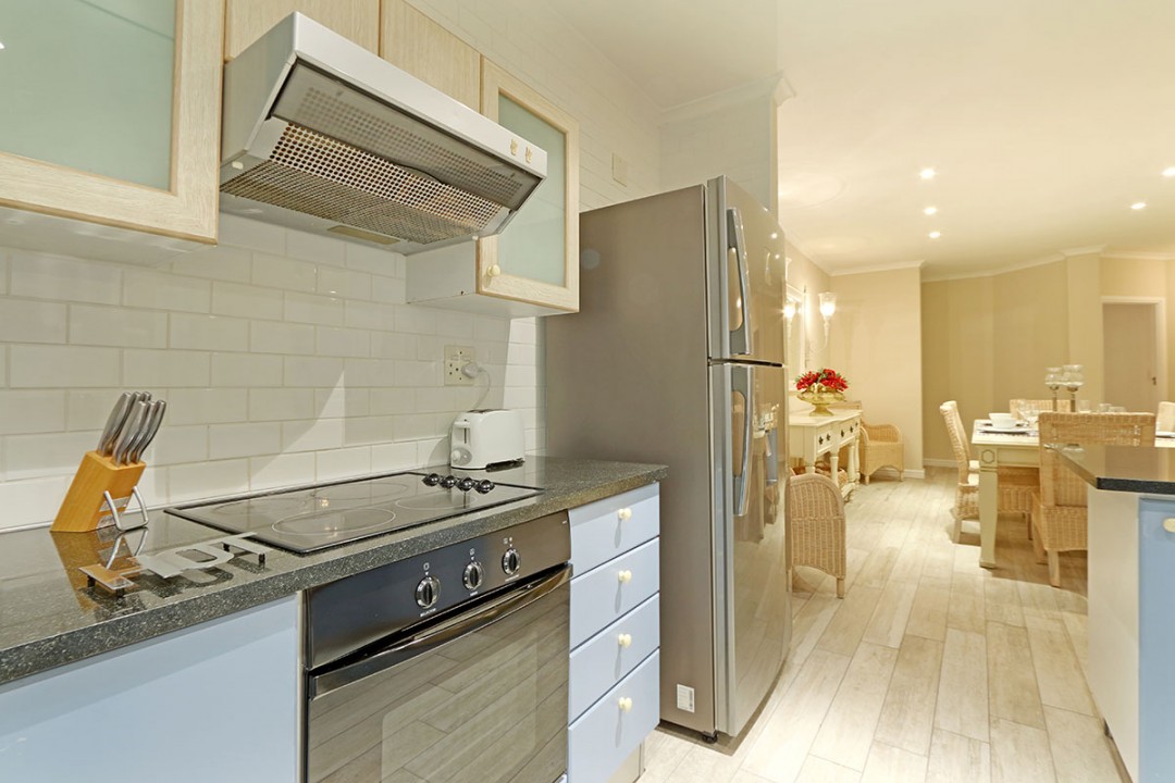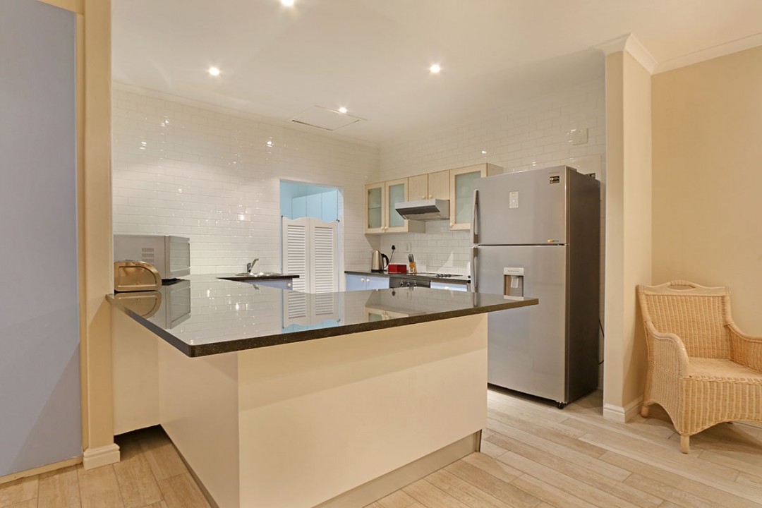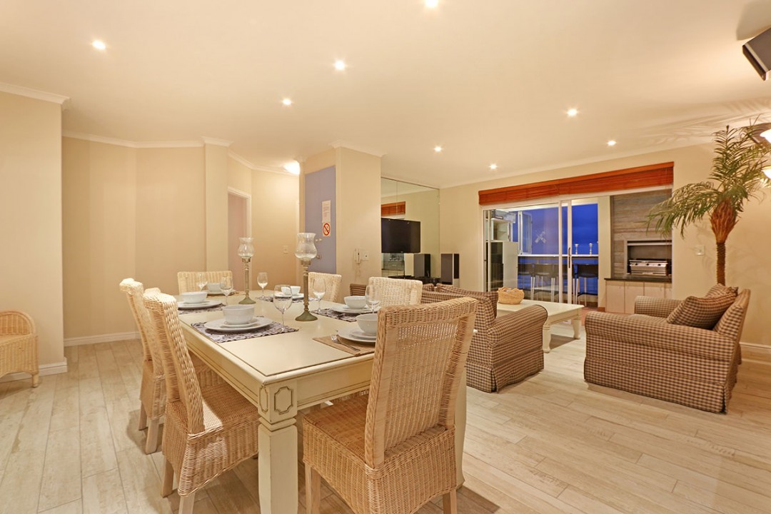 Bedrooms and the large open plan kitchen and living room area all take advantage of location- enjoying impressive views of the ocean and Robben Island. It is also perfect for entertaining- the kitchen is large and a dishwashing machine takes care of the pesky details of home-cooking, while a large balcony fully equipped with a private barbeque area is perfect for a good South African braai (barbeque) overlooking uninterrupted ocean views.