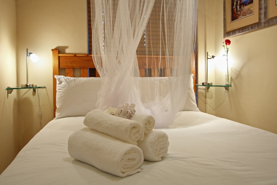 Leading from the living area is the master bedroom. Reminiscent of a forgotten era in the likes of Livingstone, it has a comfortable queen bed and decorated with a mosquito net, you might just dream of discovering new islands and tribes.