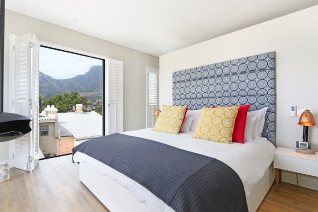 This gorgeous and beautifully decorated colorful home in central and charming Tamboerskloof has 4 bedrooms, which are all en-suite. It is an easy lock up and go home which is light, bright and sunny. It has lovely mountain and harbor views and is within walking distance to lots of restaurants and coffee shops.