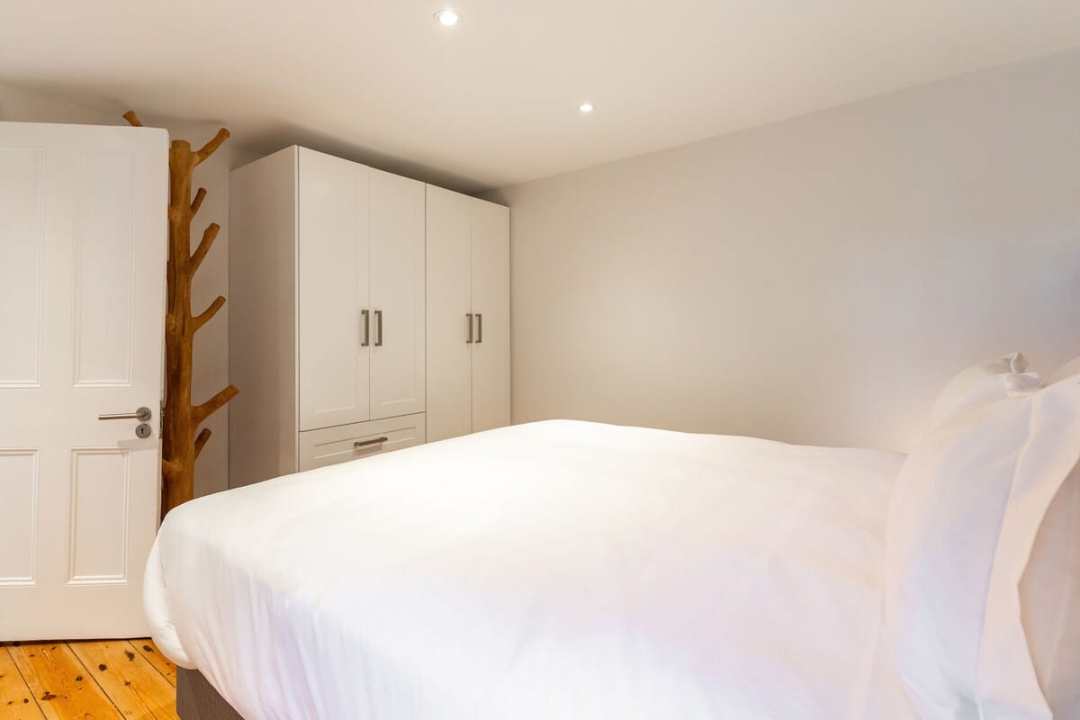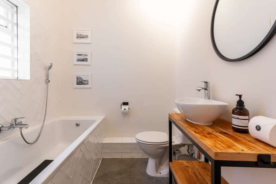 Ascending the staircase from the lounge, the second level unveils the second bedroom, adorned with a queen-size bed, built-in cupboards housing an inverter system, and a step-up ladder leading to an elevated balcony offering breathtaking views of Lion’s Head. Completing this level is a dedicated bathroom with a shower, ensuring comfort and convenience for guests.