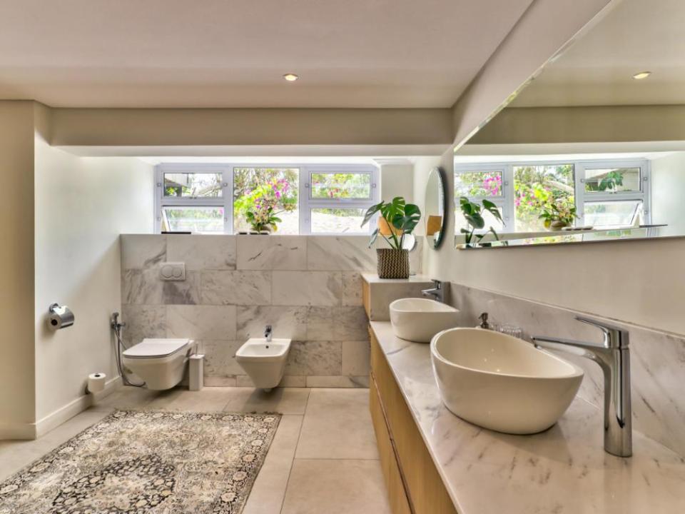 Noni Villa is a 3-bedroom, 2-bathroom gem situated in the exclusive Fresnaye area. This spacious home features an open plan design that perfectly combines modern design and comfort, offering guests the ultimate Cape Town retreat. The master bedroom is tastefully furnished with a king bed and comes with a private en-suite bathroom. The second and third bedrooms host comfortable double beds, sharing a stylish and convenient bathroom. All rooms offer pool access, making relaxation an easy feat. Step outside to marvel at the sparkling private pool and admire the mesmerizing sea views. when it’s time to unwind indoors, retreat to the separate TV room, which provides the ideal entertainment space for everyone. The expertly-equipped kitchen melds elegance and functionality, perfect for all your culinary needs. A separate laundry room adds an additional touch of convenience to your stay. Experience the serene and luxurious lifestyle at Noni Villa, where every detail has been carefully considered to make your vacation unforgettable.