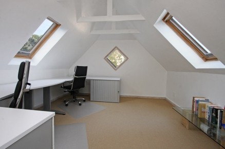There is a double garage (with off street parking for another 3 cars), and a large storeroom area for and a flat garden.