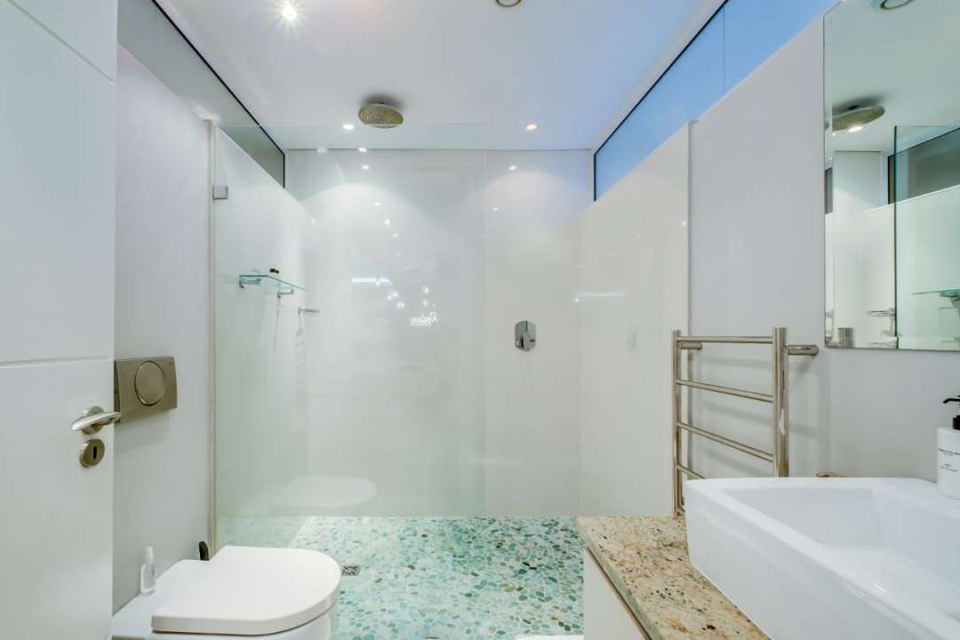 Shared bathroom (with Ocean Room) with shower and heated towel rails