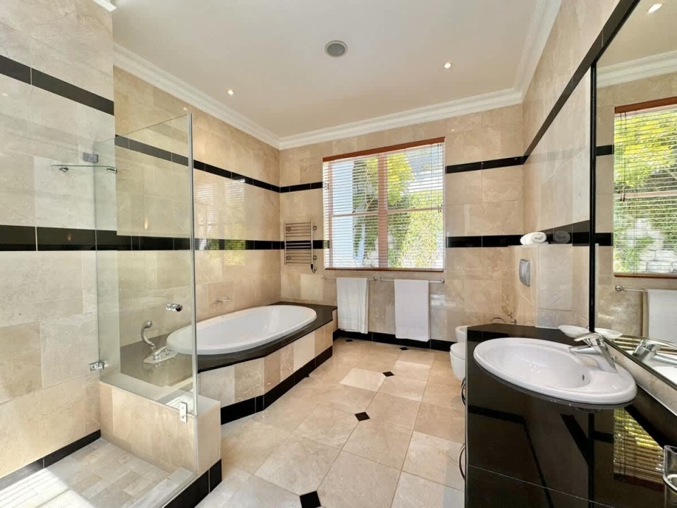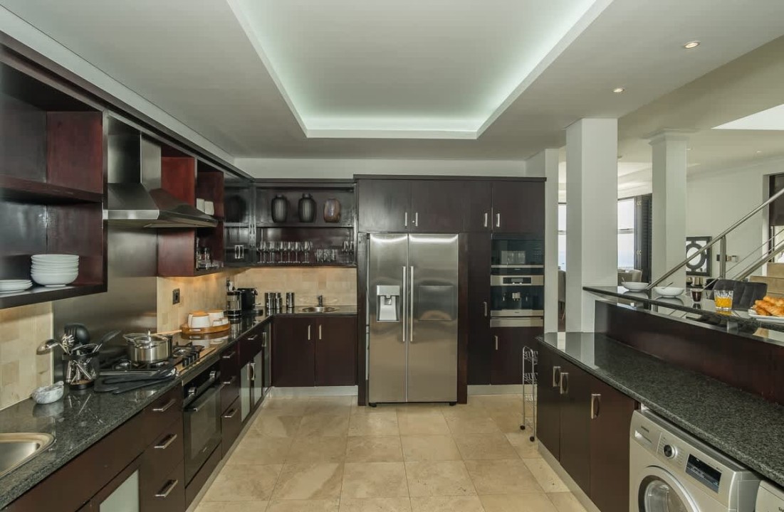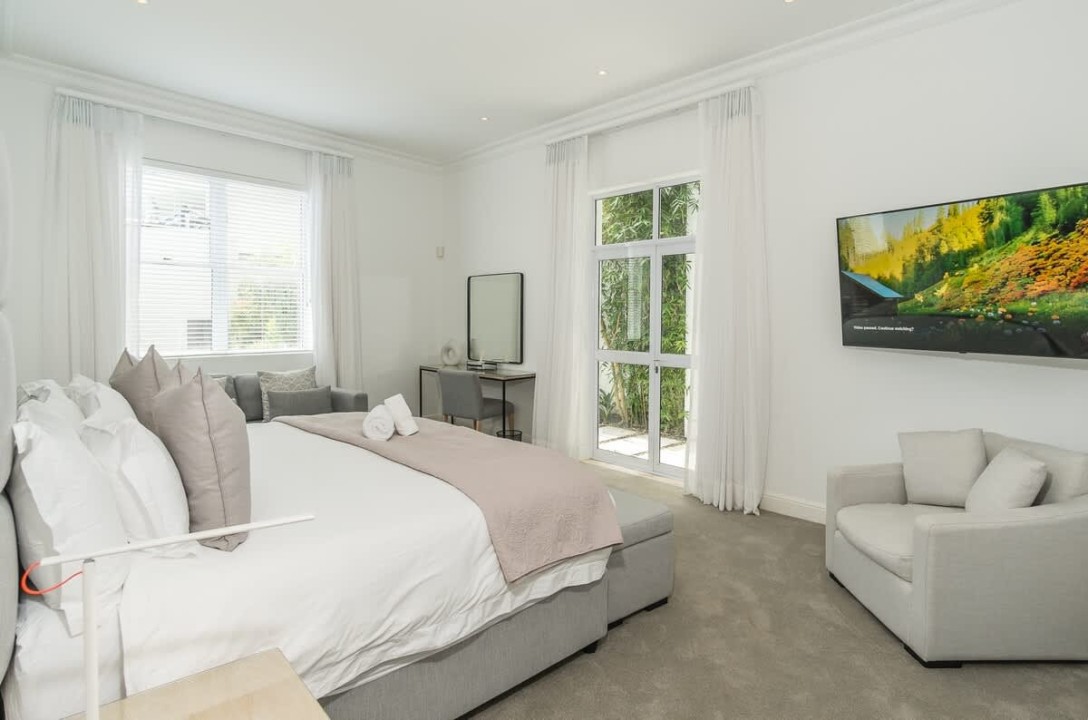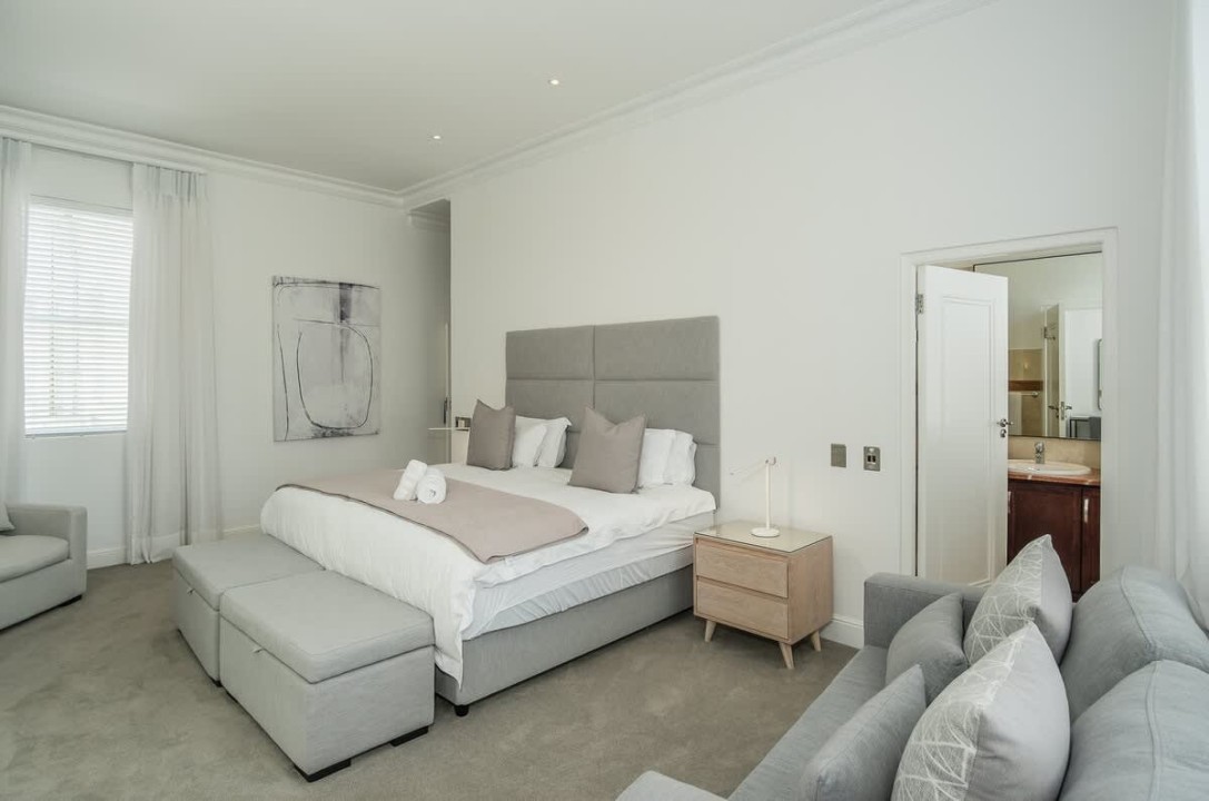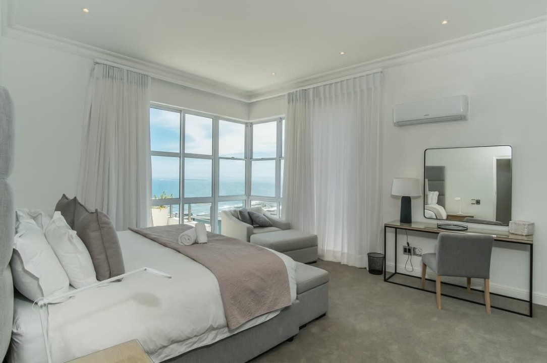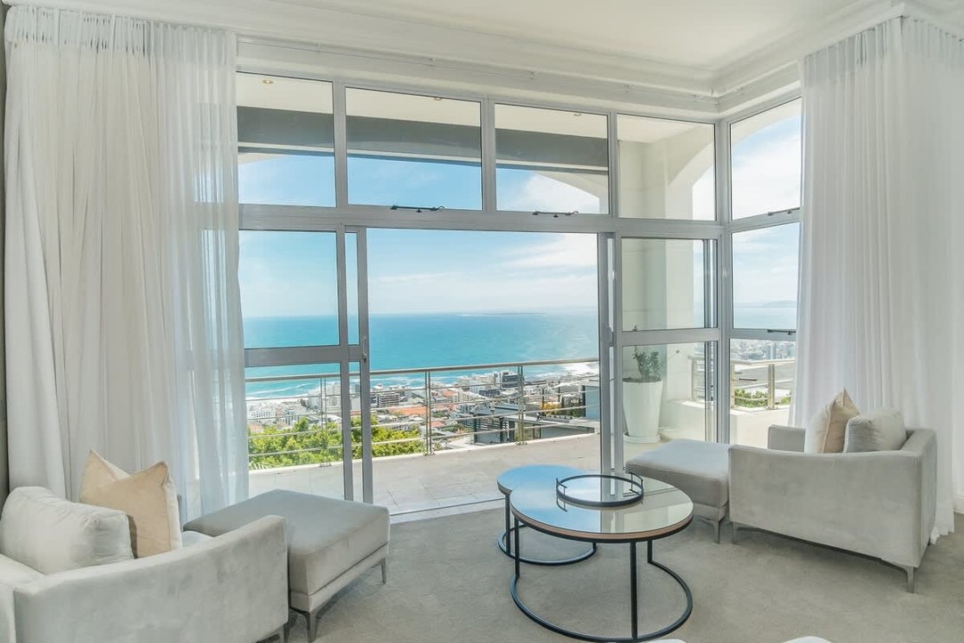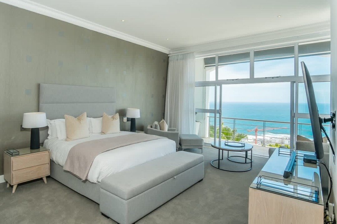 Nestled in the prestigious suburb of Bantry Bay, Cape Town, this exquisite 4-bedroom villa epitomizes luxury living with unparalleled ocean vistas. The first two bedrooms, situated on the third floor, offer breathtaking views of the Atlantic Ocean and boast access to a private ocean-facing balcony. Each bedroom is generously proportioned and features its own en-suite bathroom, ensuring absolute comfort and privacy. The master bedroom goes above and beyond with a dedicated seating area, a walk-in closet, and a big screen TV.