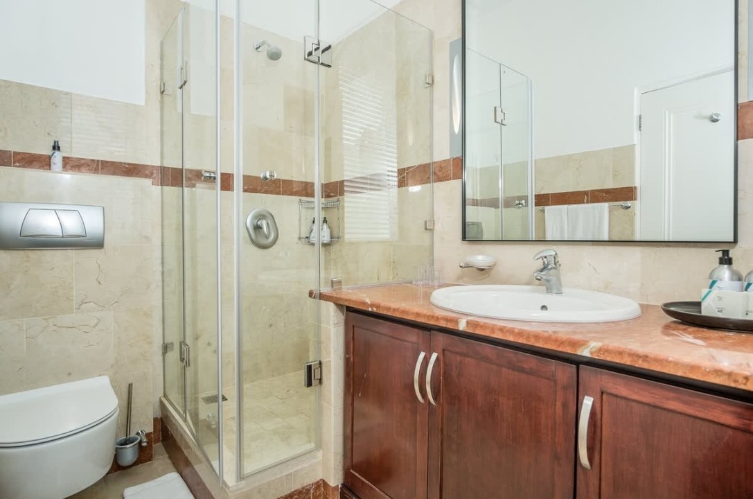 The third bedroom, also located on the third floor, is a haven of tranquility, featuring an en-suite bathroom and direct access to a private courtyard with captivating ocean views. Meanwhile, the fourth bedroom, situated on the ground floor, welcomes guests with its private entrance and en-suite bathroom.