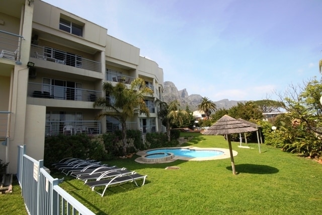 Luxury 2 Bedroom holiday apartment in Camps Bay fully equipped with washing machine and tumble dryer. Open plan living spaces with patio onto garden. Air conditioned. Complex features two swimming pools, jacuzzi and spa.