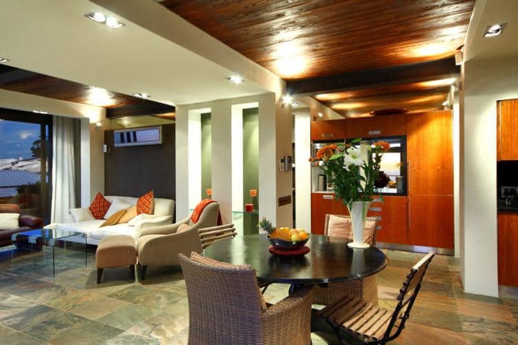 This contemporary styled apartment is a hidden gem. Gorgeous flagstone tiles line the open plan kitchen and air-conditioned living room area, which leads directly on to the wrap around balau wood deck. Majestic, uninterrupted views of the Atlantic Coastline are unique to this apartment, inspiring a sense of calm and serenity for the quiet holiday maker.