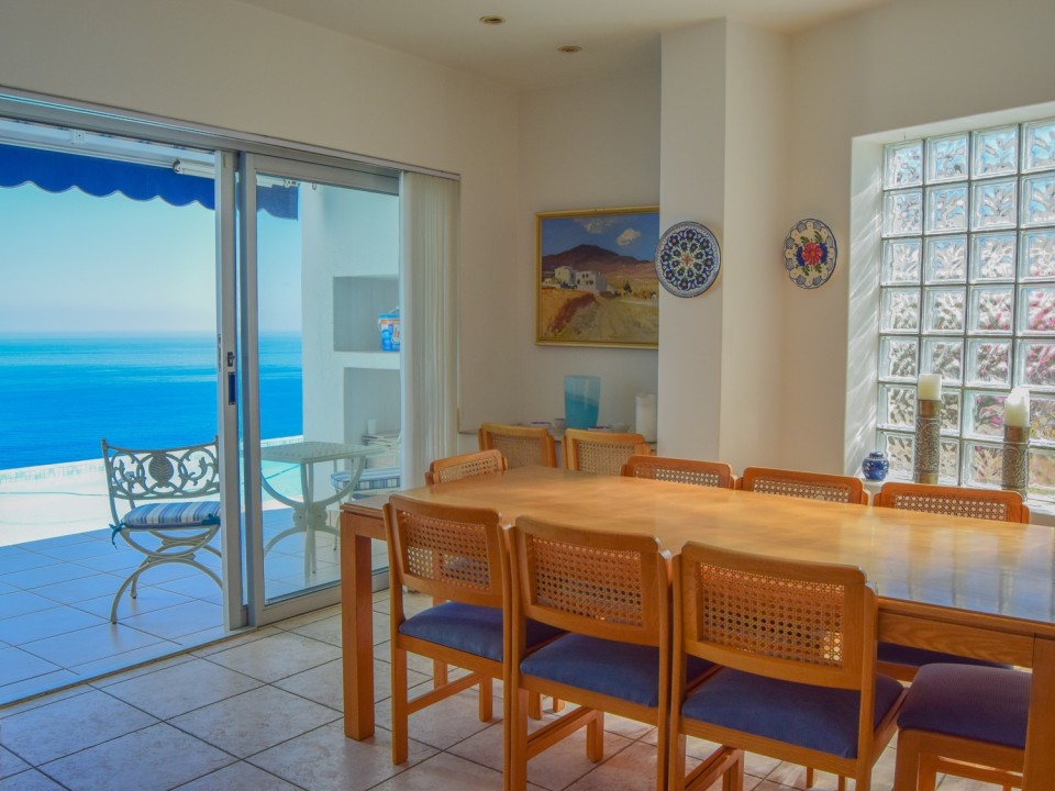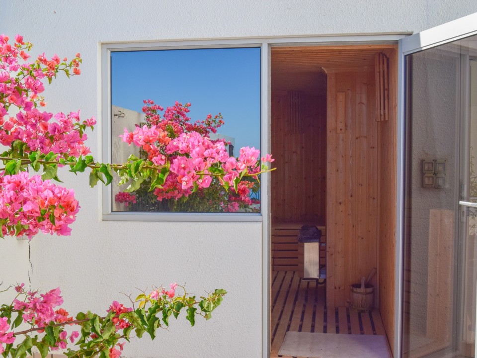 Pool/Garden/Sauna room – Sea Views from all rooms – Sliding doors leading out to bottom balcony with outdoor dining and sun loungers –
