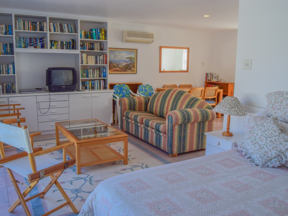 On the other side of the house, upstairs, there is a very private self-contained, en-suite guest cottage with its own balcony, lounge and kitchenette.