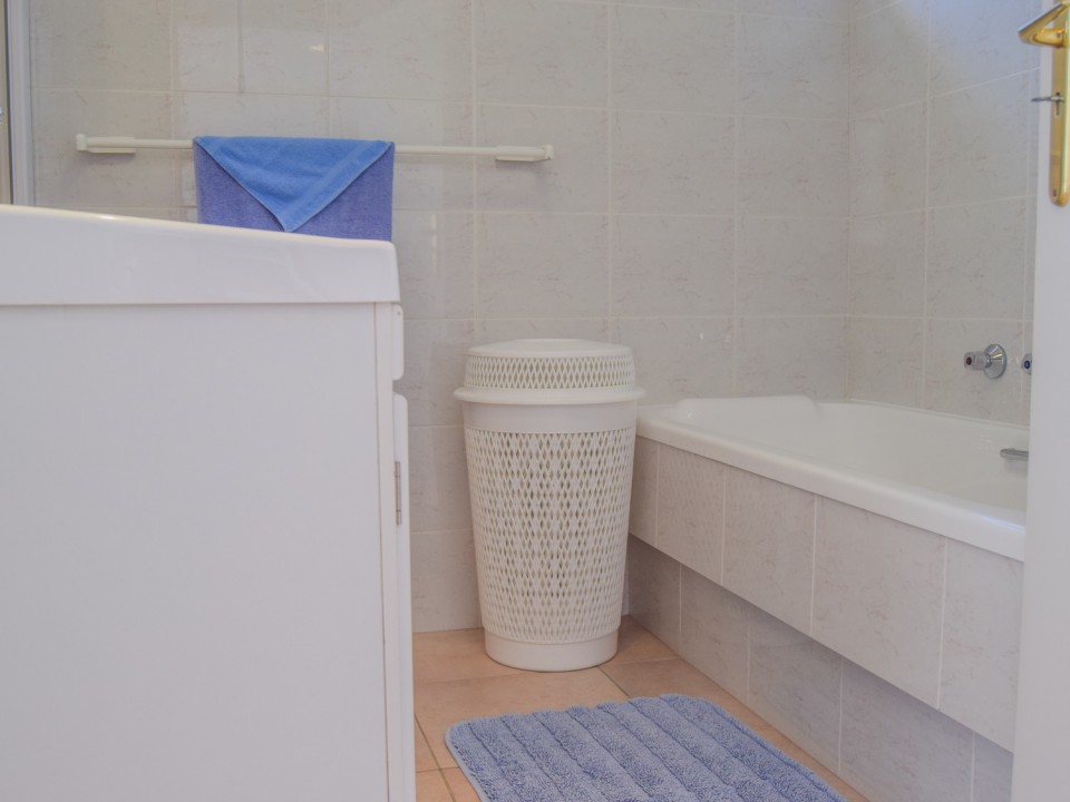 Large en-suite main bedroom with walk in cupboard, bath & shower leading out to upstairs balcony – Large bedroom with twin/double beds, workspace and BIC leading out to upstairs balcony – Spacious bedroom with two single beds, workspace, en-suite bathroom with shower – Large family bathroom with bath and shower