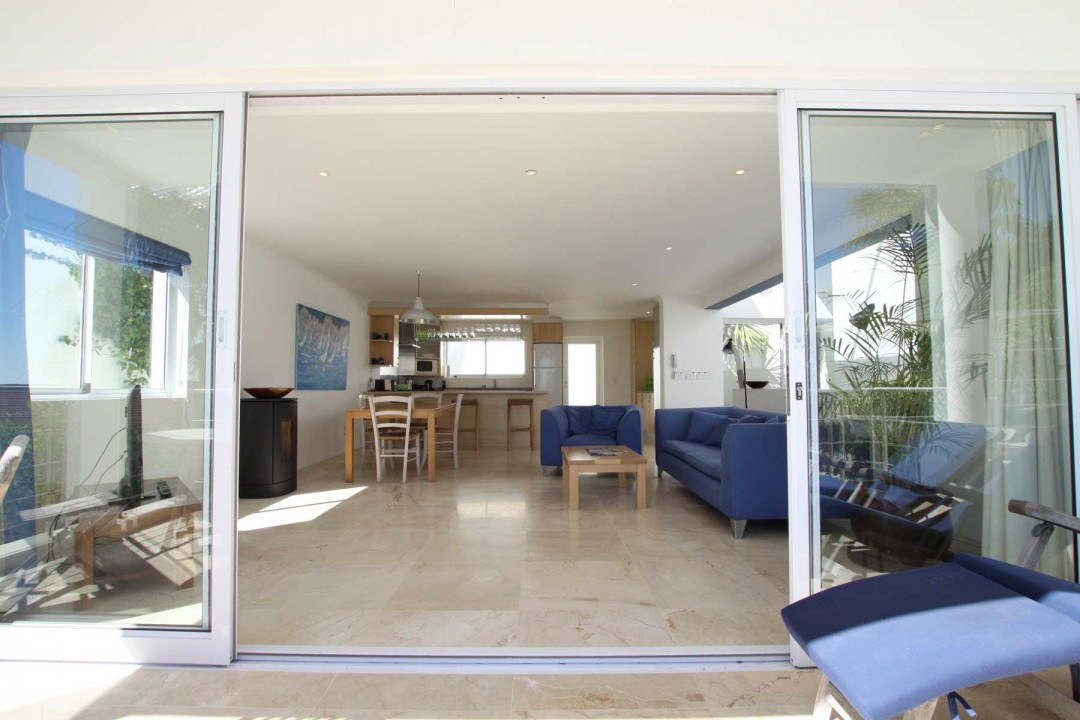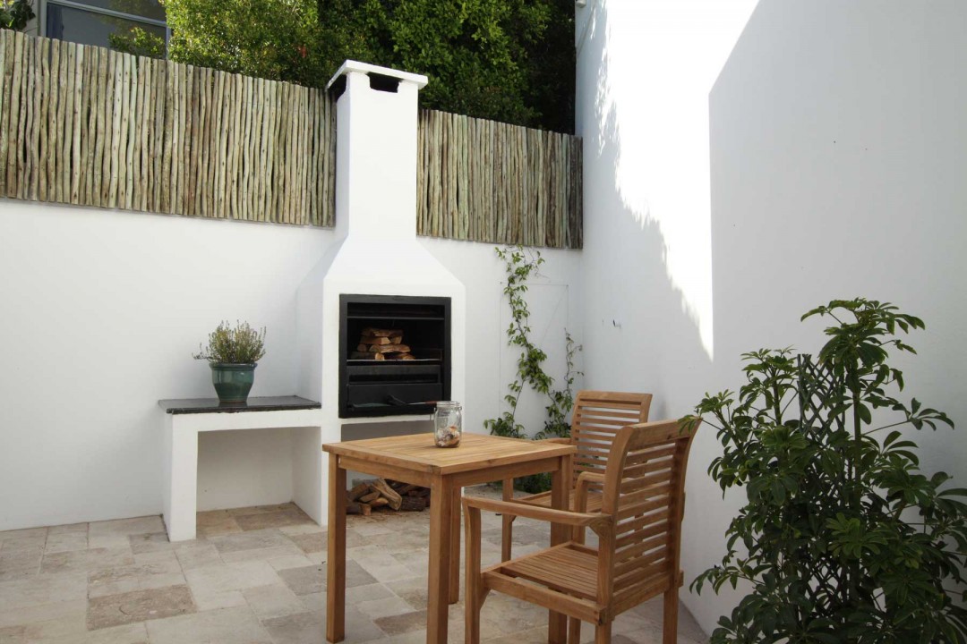 Open plan kitchen leading into courtyard with built in braai,