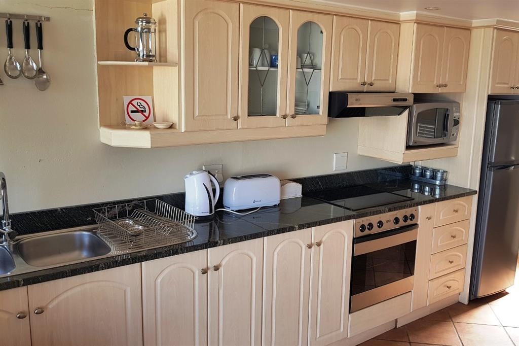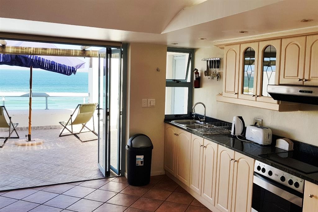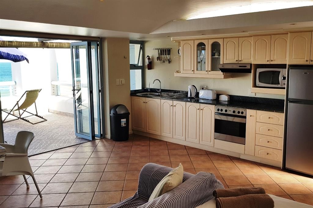 This lovely apartment it fitted with euro-fold doors opening up to a large balcony with built-in stainless steel braai and spectacular views of the bay.