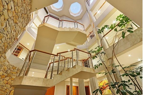 The house is fully staffed and breakfast can be included at a minimal fee. Ten well-appointed, modern suites all have balconies facing the sea or the private tranquility of the landscaped gardens with koi ponds, leading the eye along the sculptured lines of the architecture and internal gardens.