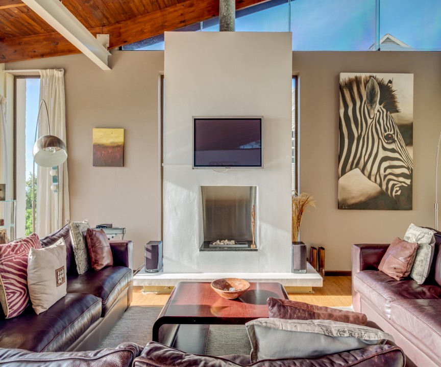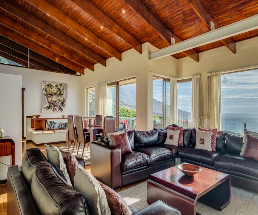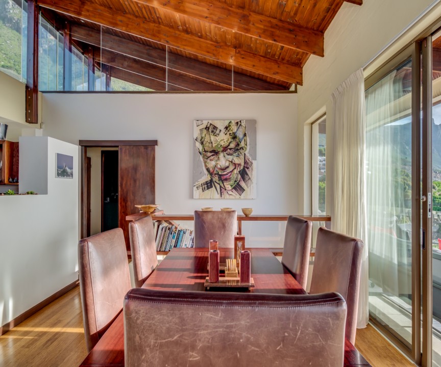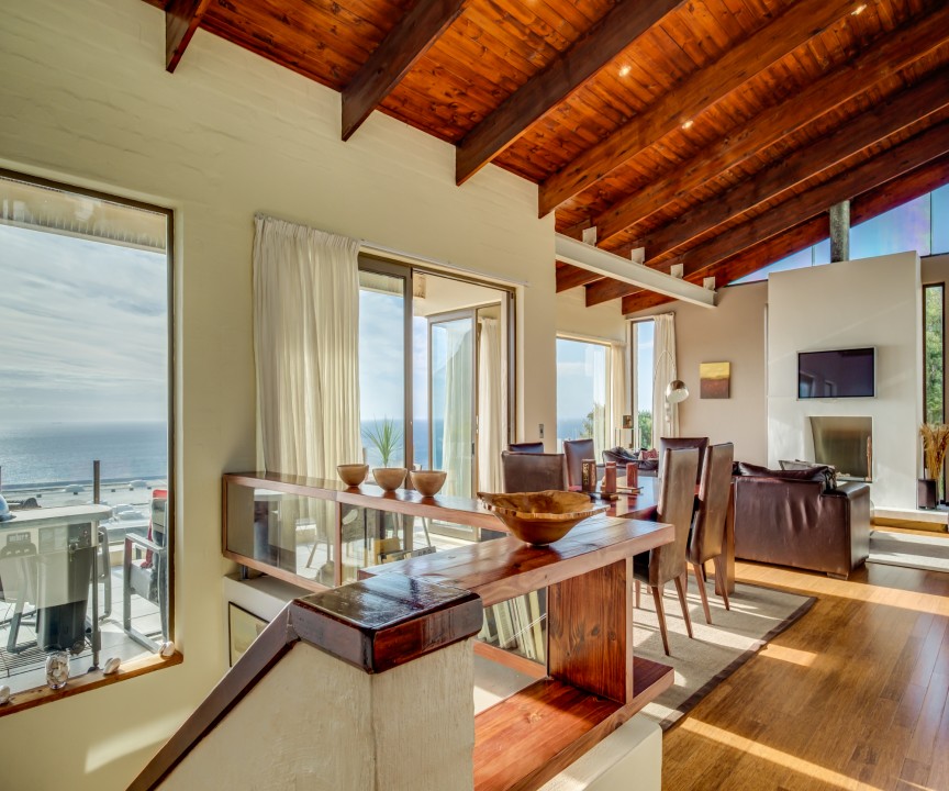 Flat screen TV with DSTV Gas fireplace 6 seater dining table Access to balcony with sea & mountain views