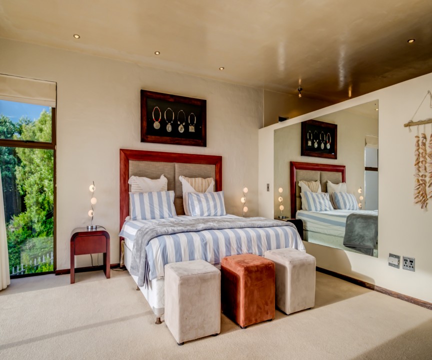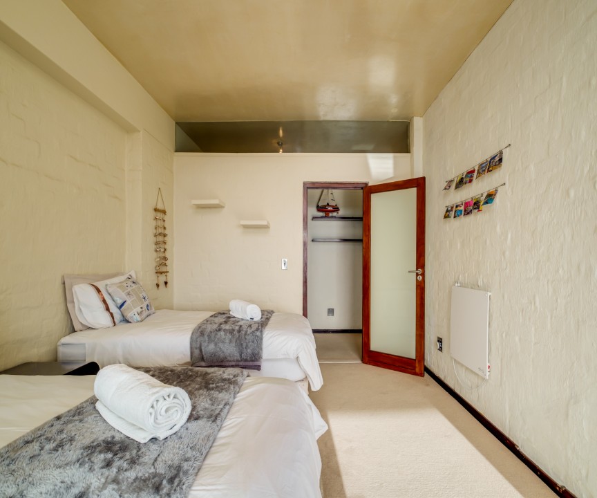 Three bedrooms offer comfortable and cosy havens on the lower level of the house, with ample cupboard space, and lovely sea views. The master bedroom has a king-sized bed and en-suite bathroom with shower and bath, while the second and third bedrooms have queen-sized and twin beds, respectively, and share a bathroom with a shower-over-bath.