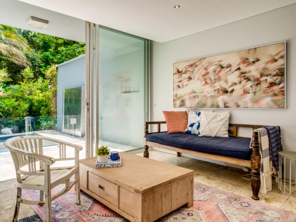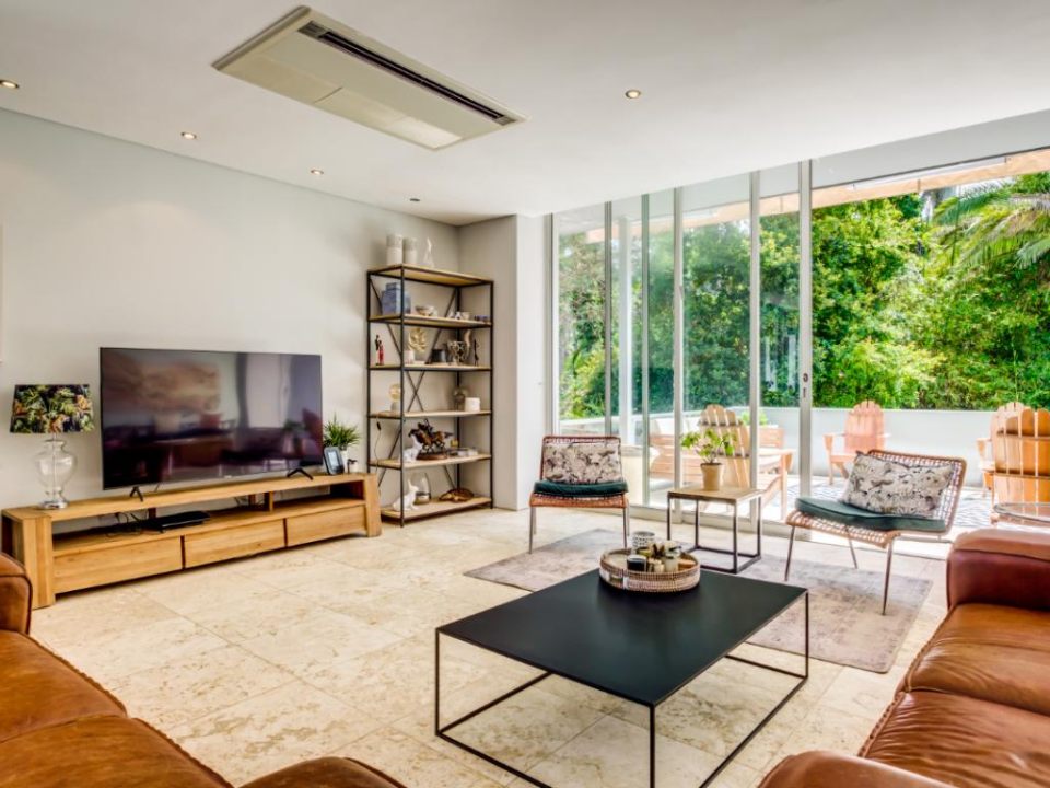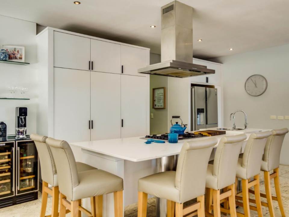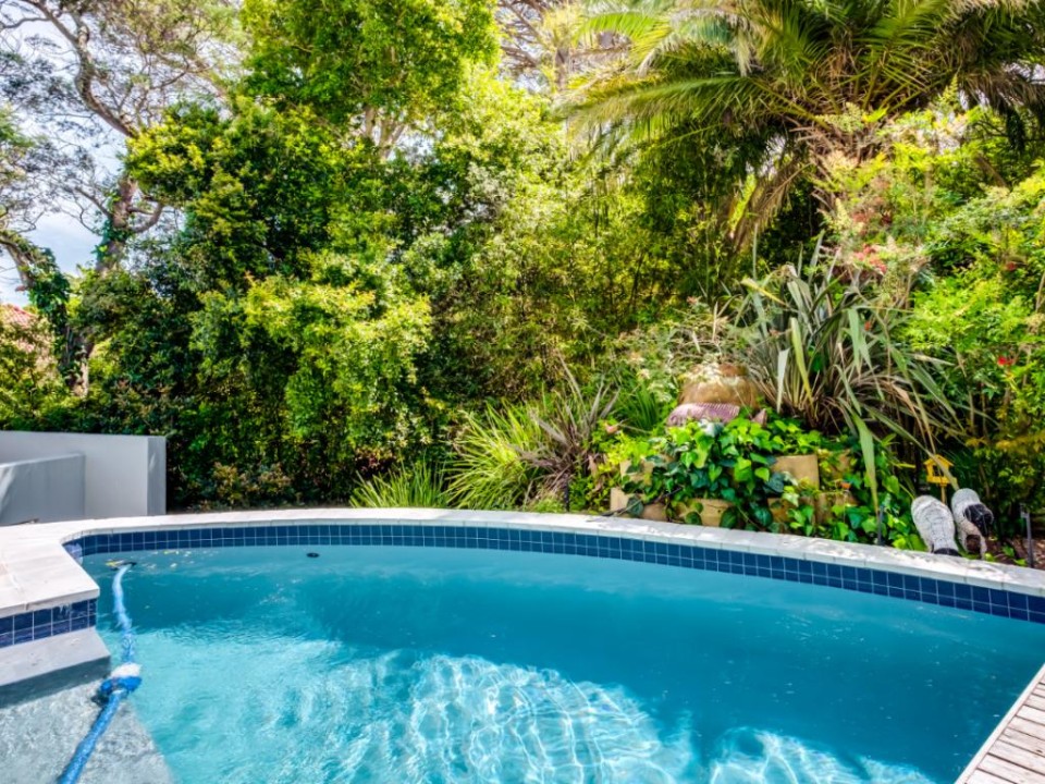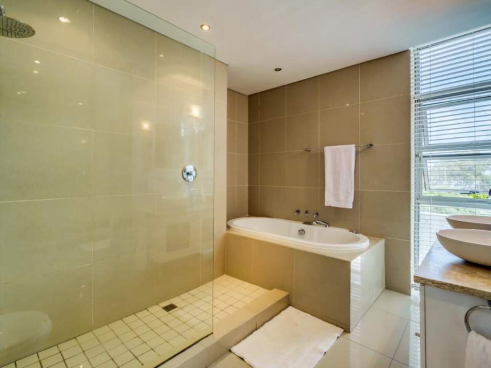 This wonderful home offers a cozy space to relax and enjoy a family holiday in a safe location. The open-plan living area features a TV lounge, dining area, reading nook, and fully equipped kitchen and scullery. The lounge has plush seating and opens out onto a sunny patio. The patio features a swimming pool with a security gate. The 3 bedrooms are upstairs. They all have air conditioning and en-suite bathrooms. The Master bedroom has a walk-in wardrobe and ocean views as well as an overlooking magic forest. The second bedroom looks out at the bushy forest and the third bedroom has ocean views. This home is a special getaway for a family holiday in Cape Town.