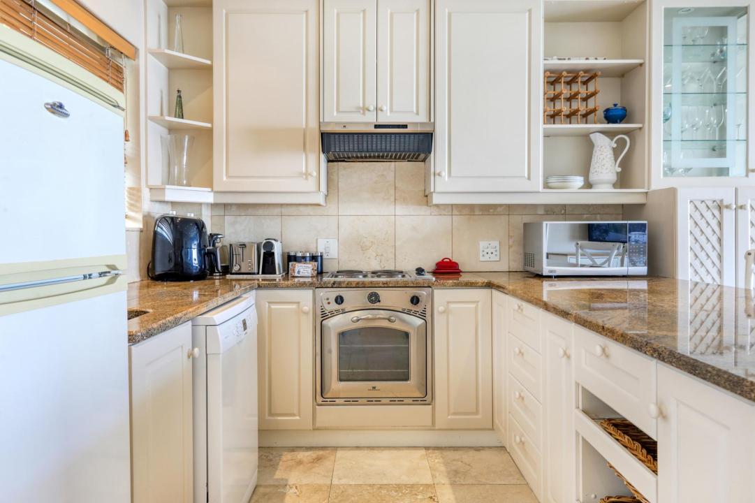 Decorated in soft tones of creams and blues, the apartment has a lovely kitchen with all the amenities needed for easy holiday living, including a breakfast bar with stools. A comfortable lounge has plush cream couches and opens onto a balcony with gorgeous views of Camps Bay and the ocean.