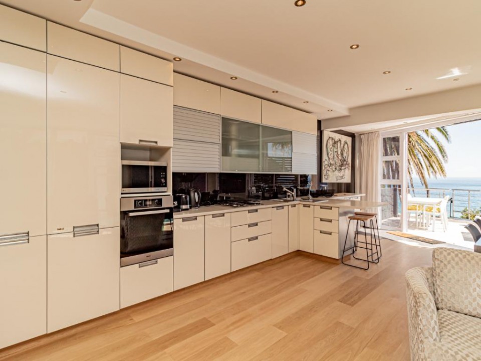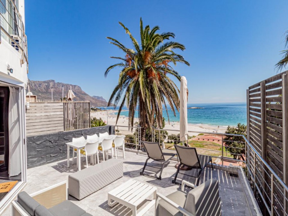 Over and above having an exceptional location on the Camps Bay beachfront, this modern 3-bedroom apartment, all bedrooms en suite, has a large open plan kitchen, dining, and living area perfect for a relaxing holiday. Suited for six people, it also has a gorgeous outside entertainment area with a plunge pool for a dip after returning from the beach. This patio has the most beautiful views and is ideal for outside dining. This apartment lends itself to enjoying the Camps Bay lifestyle of walking, exercising, and enjoying the beaches as well as being a short stroll along the beach to an array of excellent restaurants and bars. The property has as its focal point the ability to fully experience the most stunning sunsets every night. Despite all this, the rooms are quiet when one wants to escape the fun surroundings.