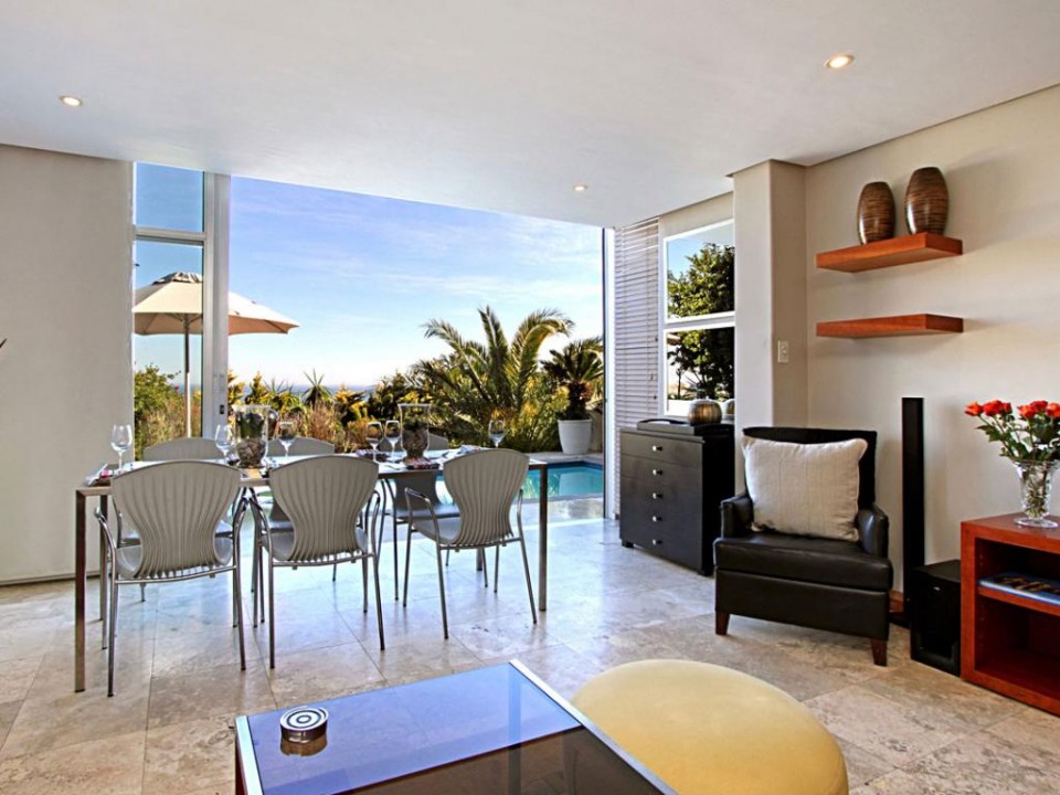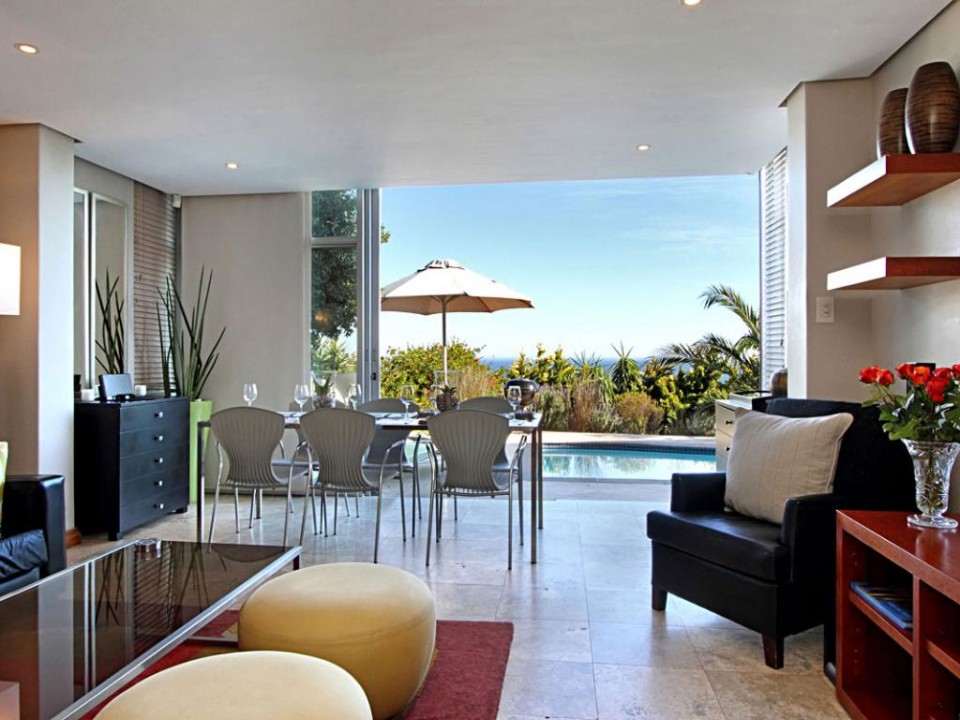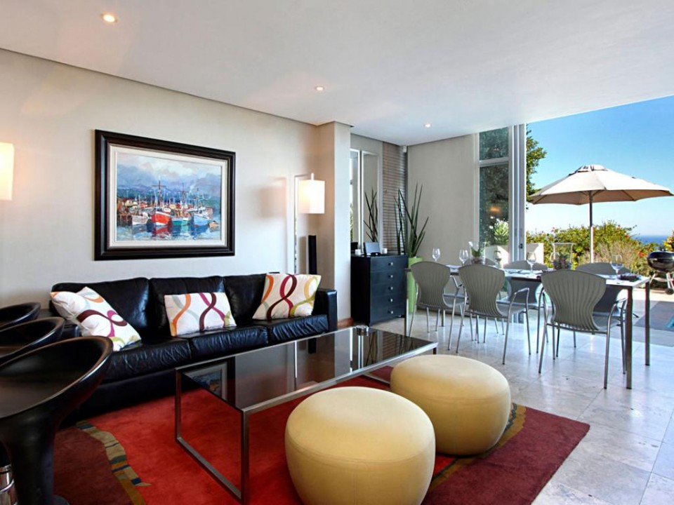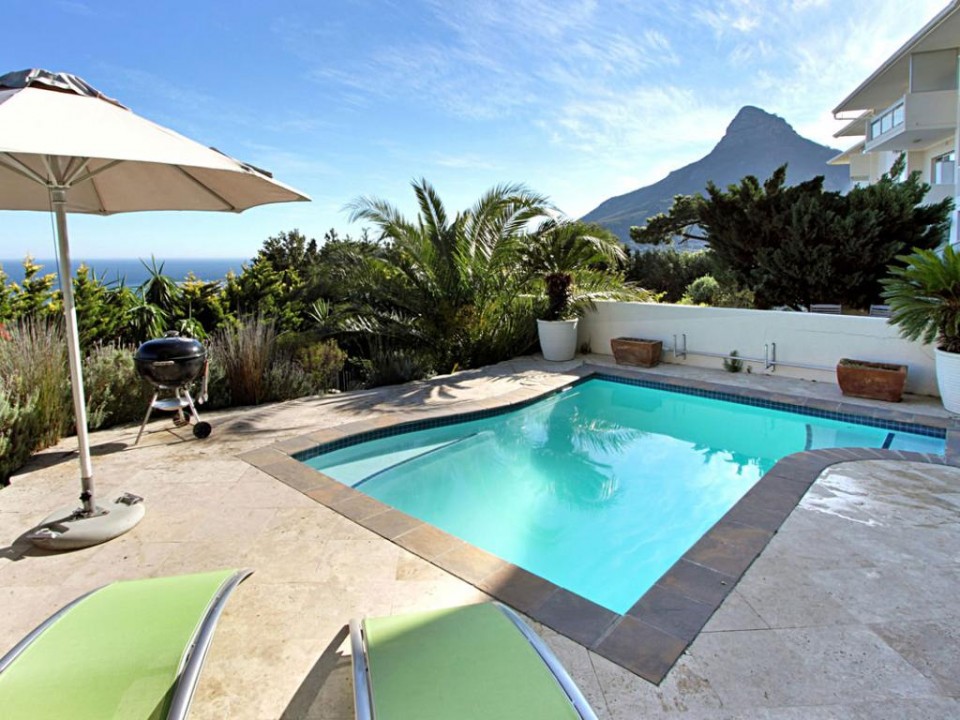 A homely one bedroom apartment with private patio and pool, situated in the Panorama Complex in Camps Bay. There are sea and mountain views from the patio.