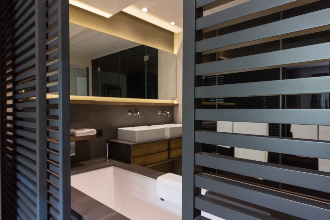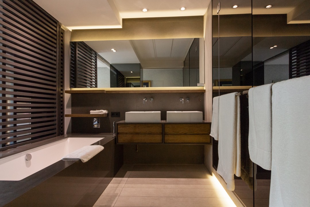 - Bathroom with bath, shower and double basin