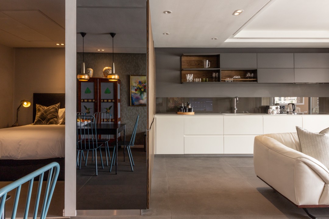 Parergon 104 has so much to offer, a extra hidden spot which comfortably rooms a double bed,the well furnished balcony offering views of the yacht basin and across Table bay and for all foodies the kitchen is simply dreamy. For a couple, a small family or business person needing a good nights rest Parergon 104 will never disappoint.